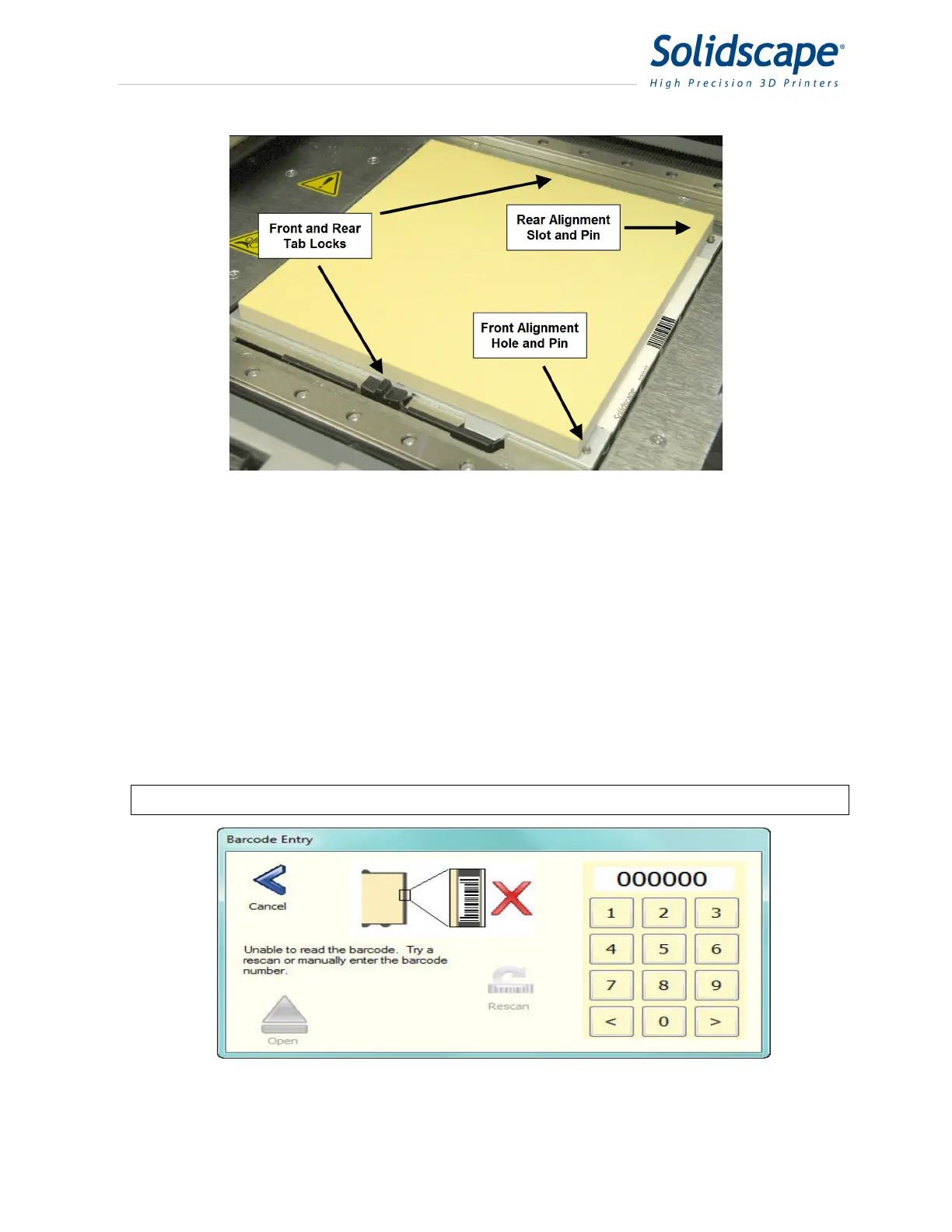 barcode to automatically identify and position the build plate for each print job. The barcode is