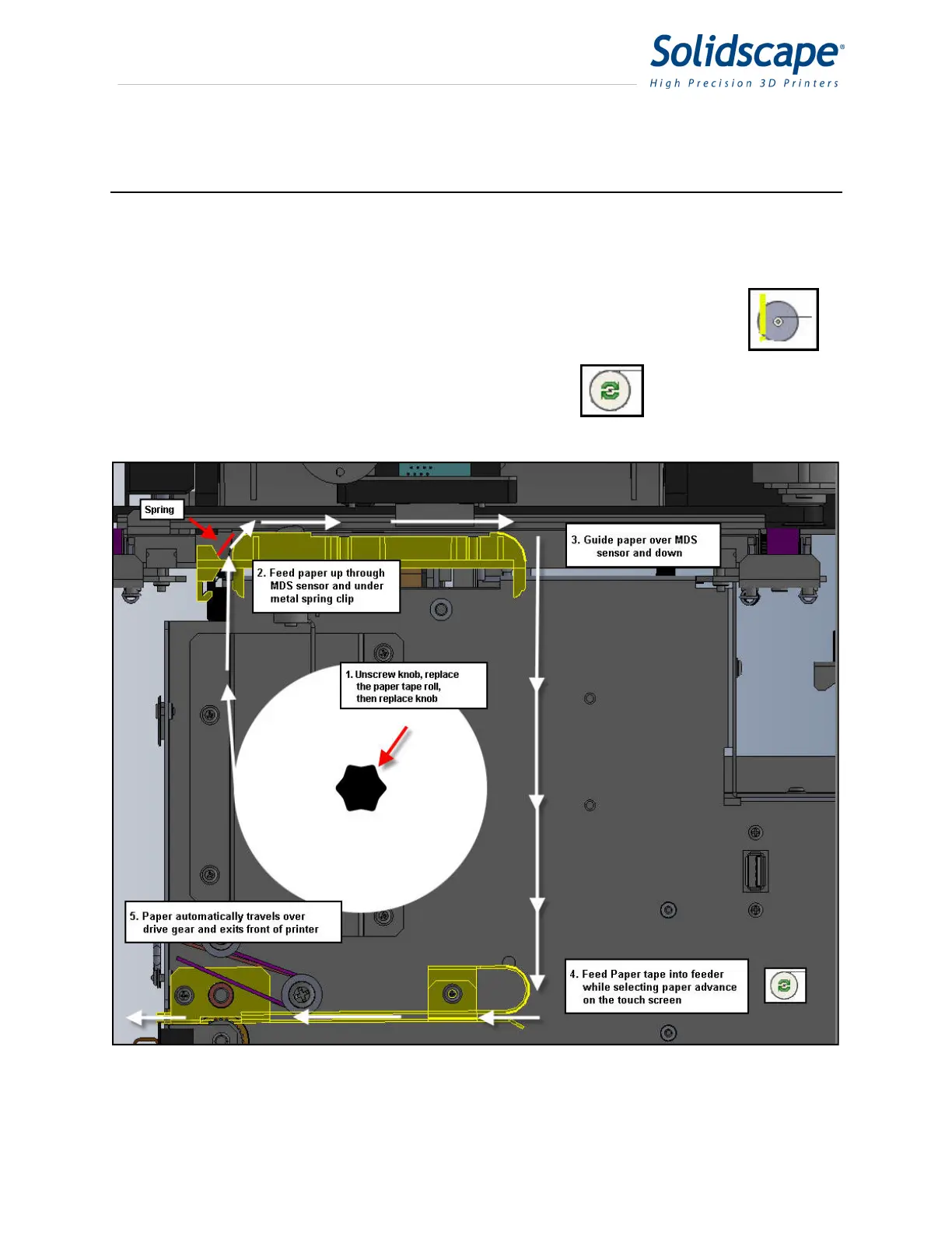 Replace the paper tape roll as shown in Figure 6-1 Paper Tape Loading.