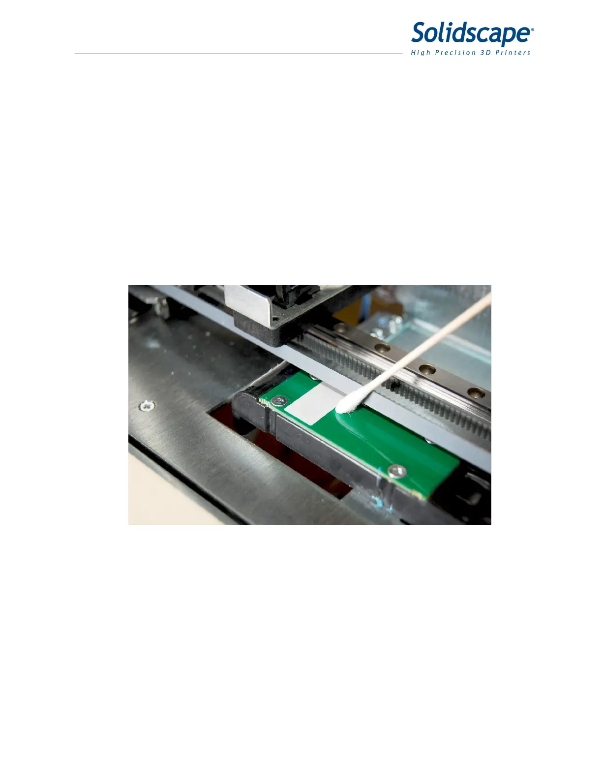 MDS sensor. Finally, use a clean Qtip to remove debris from the Purge caps of the Build and