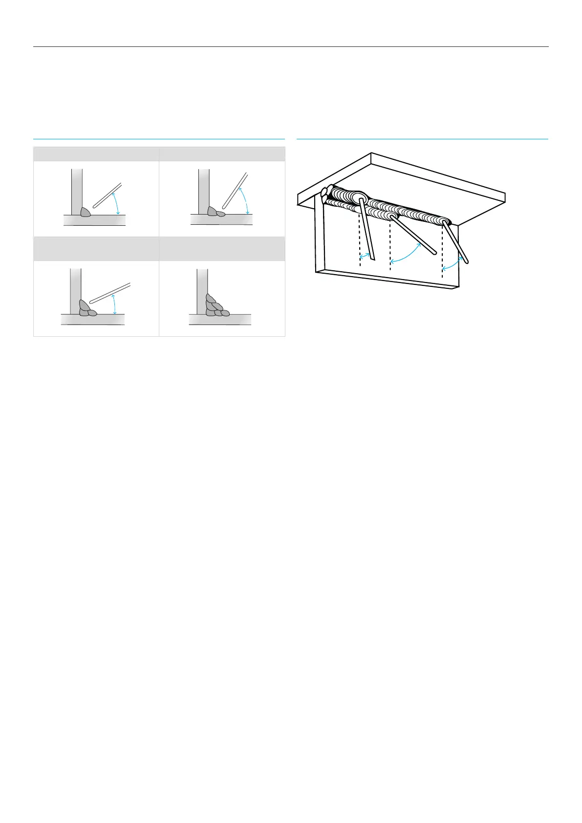Angles recommandés pour les soudures d’angle au plafondAngles d’électrode recommandés pour les soudures d’angle
