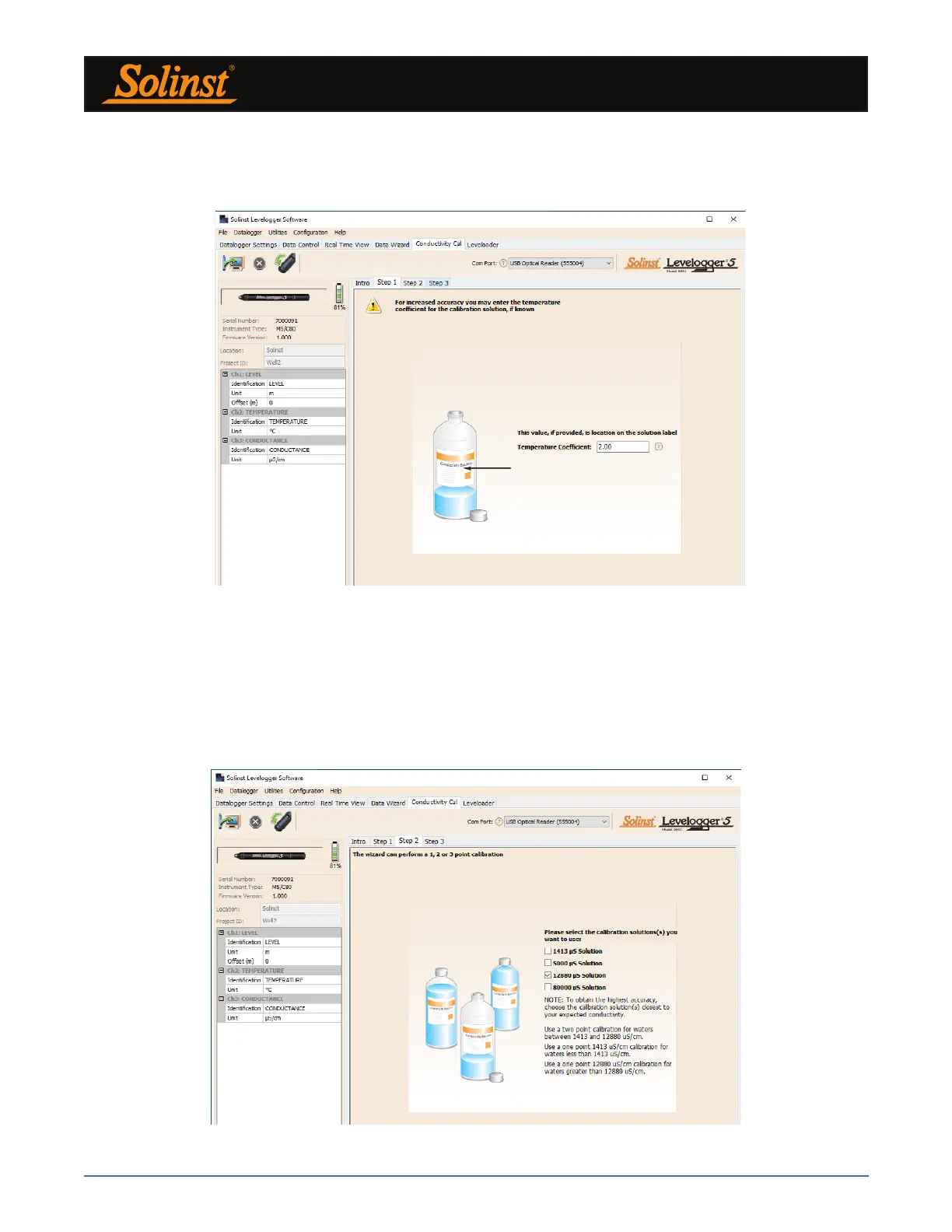 2) Setup: The Levelogger Software requires the user to select the calibration solutions. You can choose up to