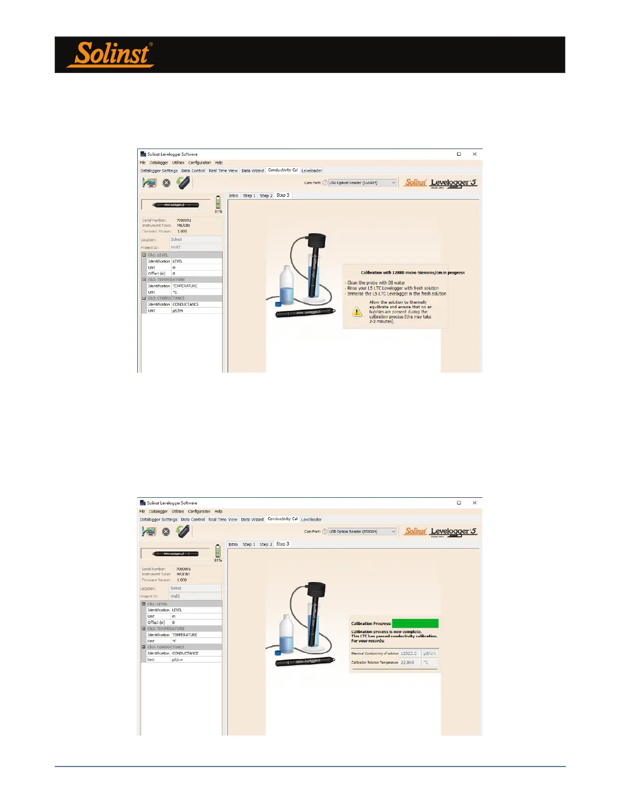 with the displayed calibration solution. Use fresh solution for calibration, and immerse the LTC Levelogger. Lightly