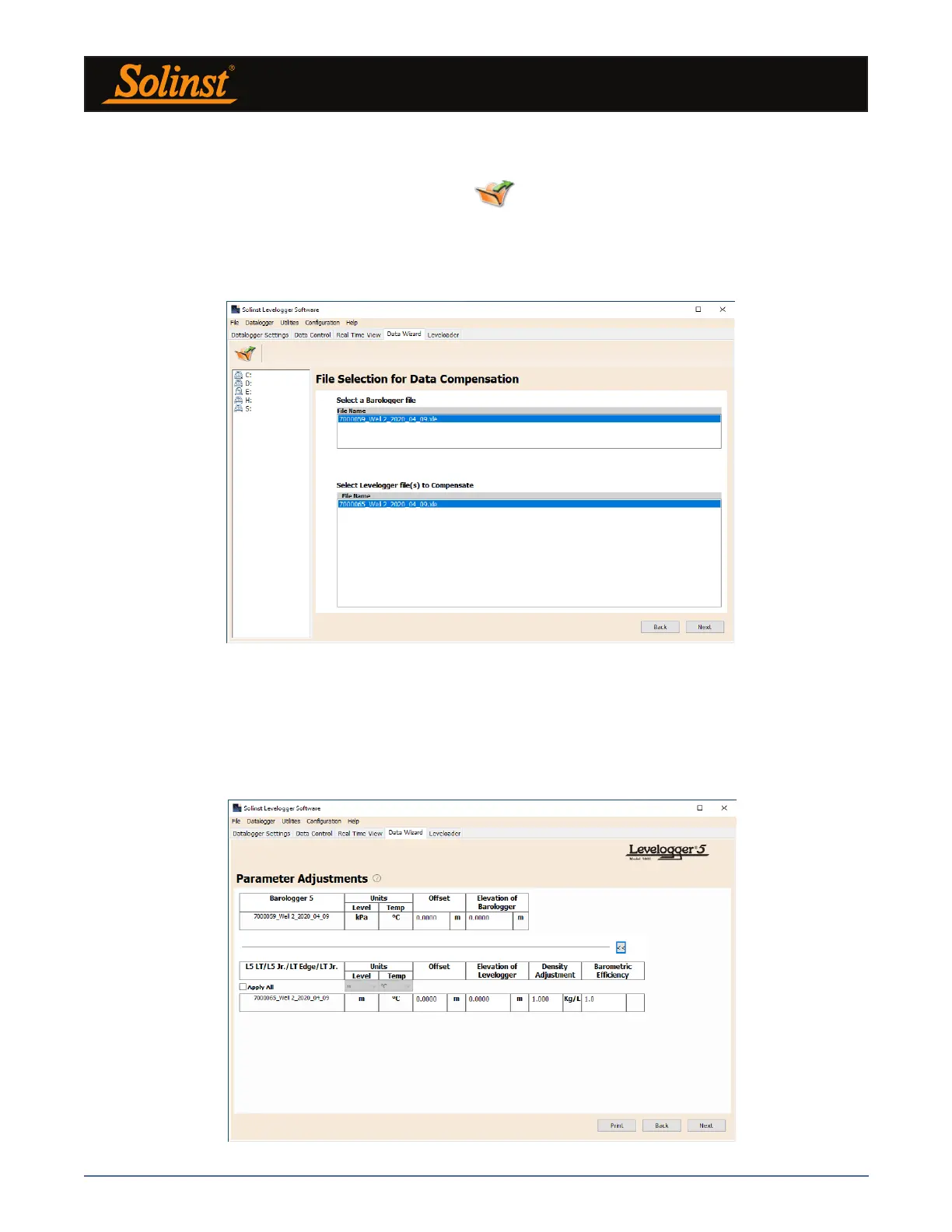 Note: See Section 8.1.1 for more information on selecting files for Barometric compensation.