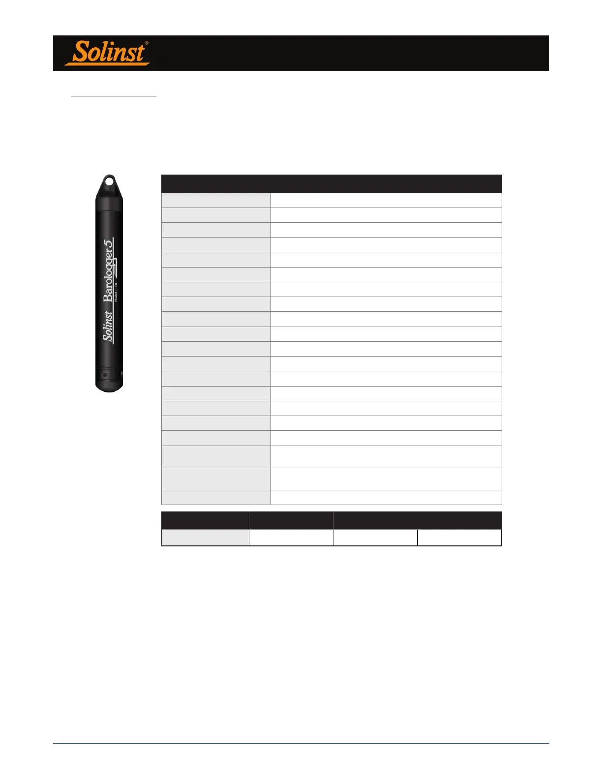 Barologger 5 Technical Specifications
