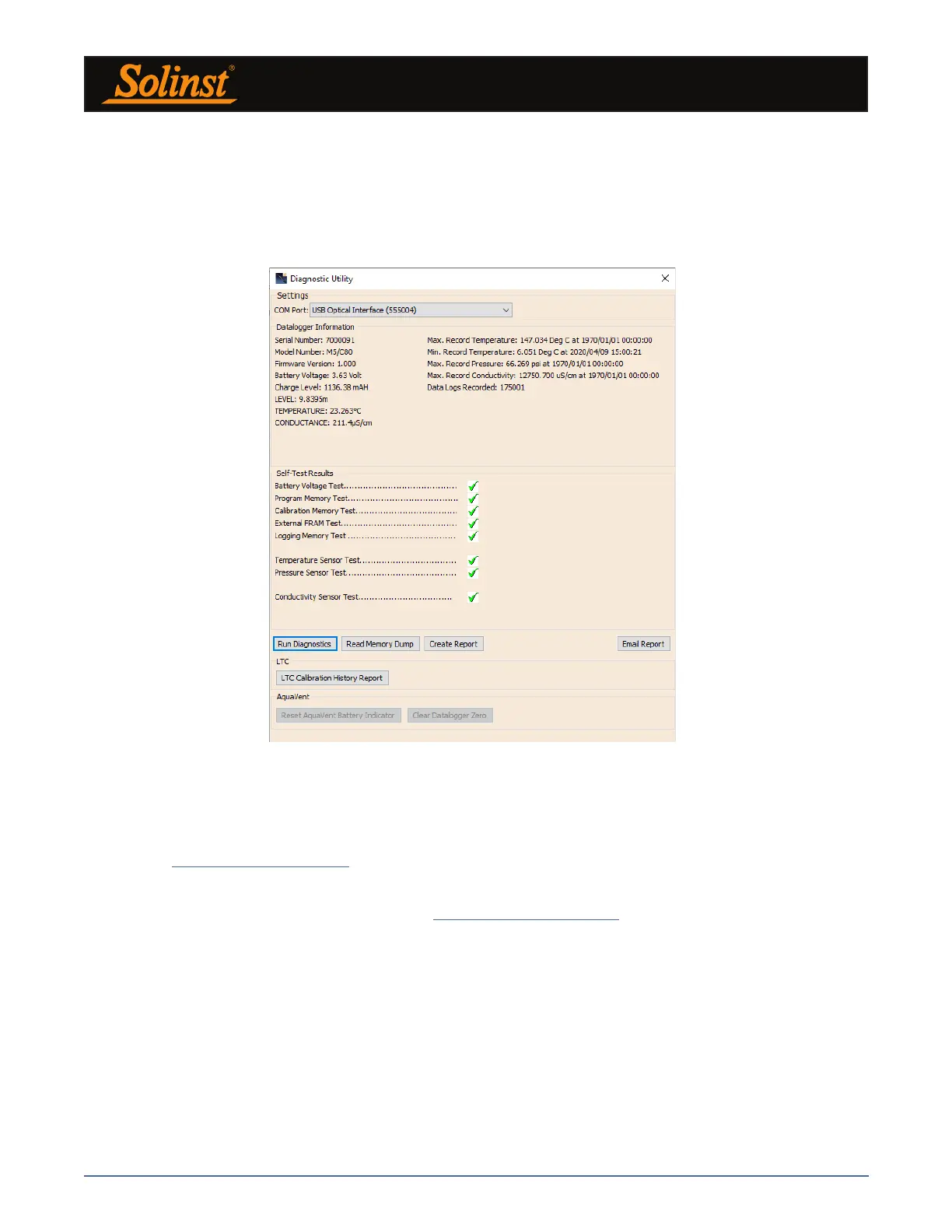This creates a text file that can be sent to Solinst Technical Support.
