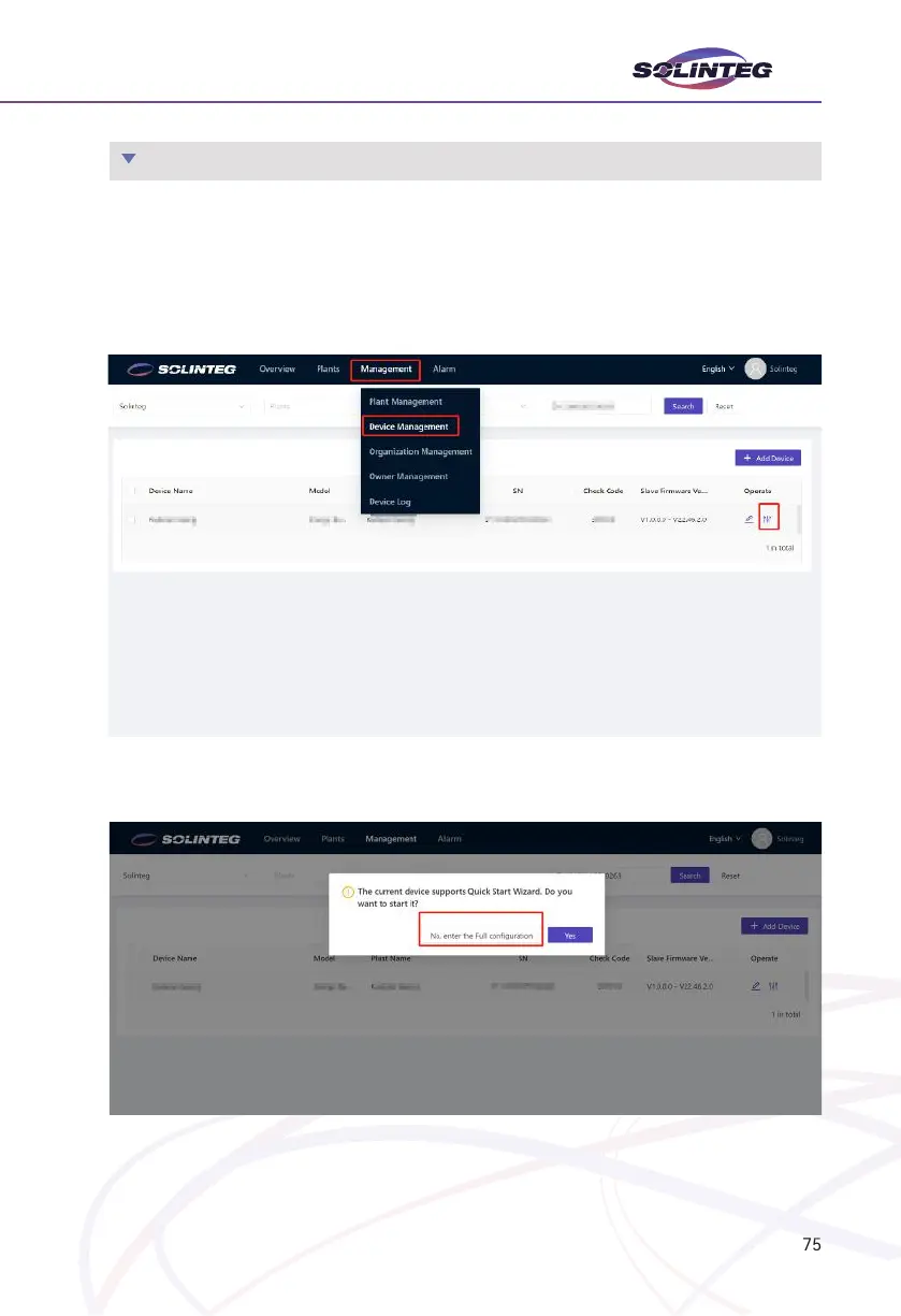 down menu. Click “Parameter Settings” in “Operate” in the column of the device set.
