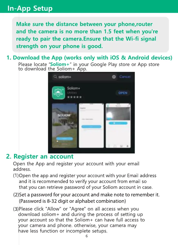 Soliom S600 - In-App Setup; App Download and Account Registration