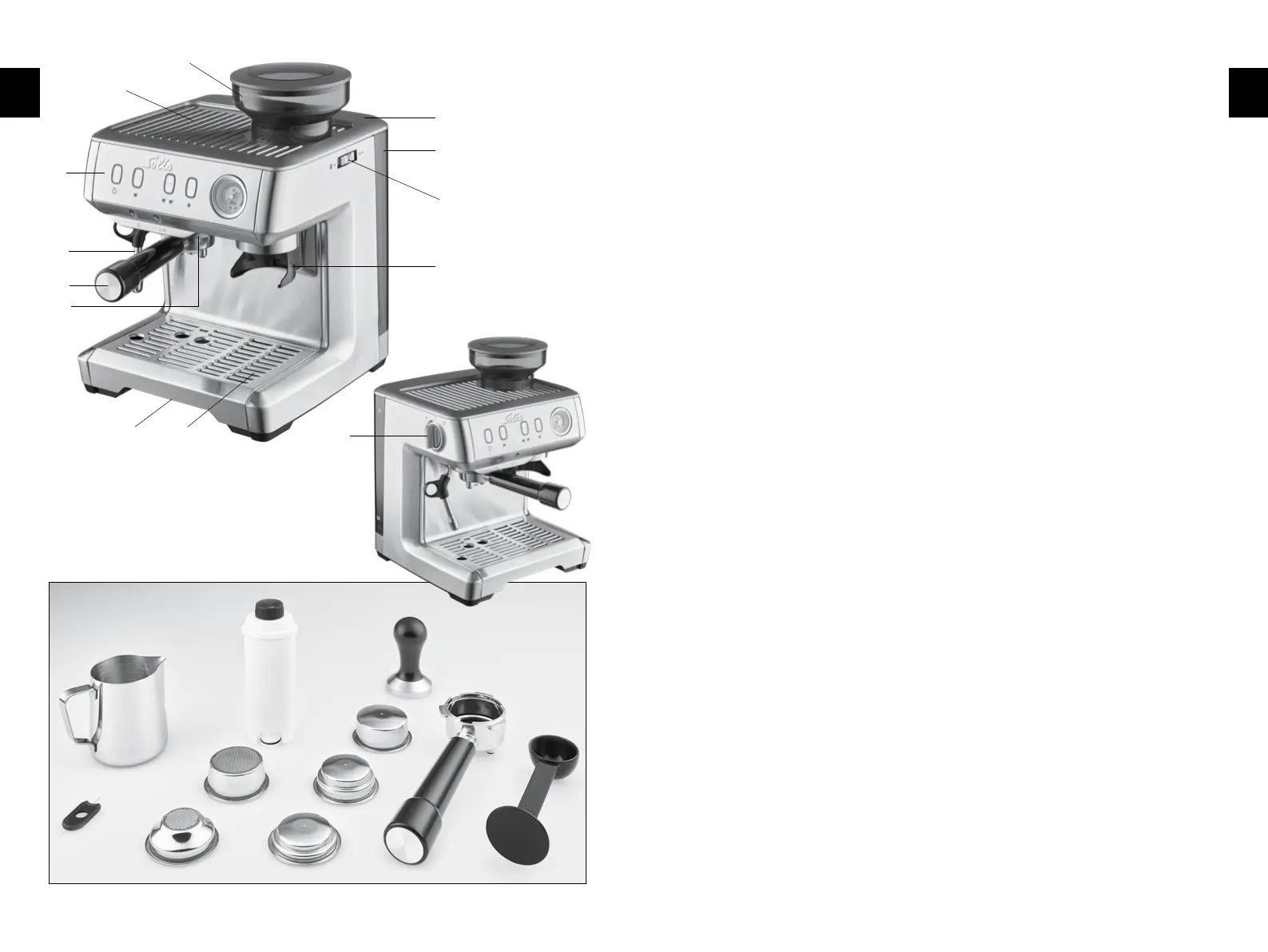 D Siebträgerhalter, darüberliegend das Mahlwerk mit Kaffeepulver-