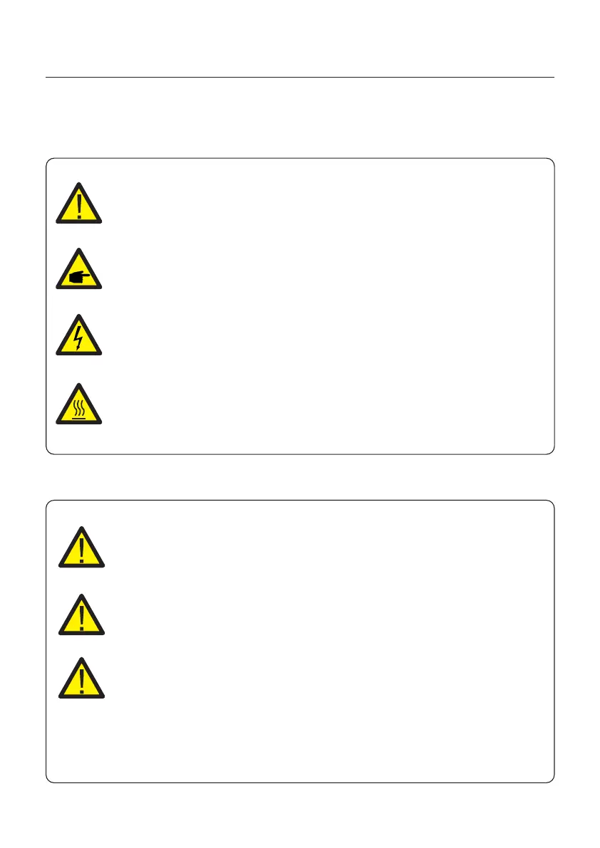 Safety symbols used in this manual, which highlight potential safety risks and important
