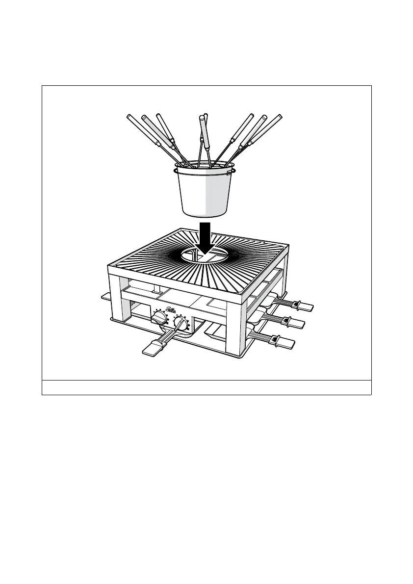 8. Place the fondue forks 6 into the fondue pot 1.
