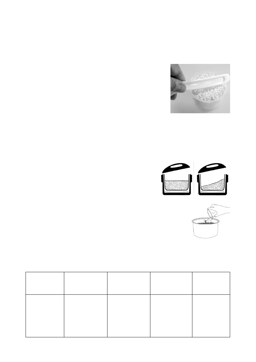 jusqu’à 6 verres gradués de riz. Le tableau ci-dessous vous indique la quantité