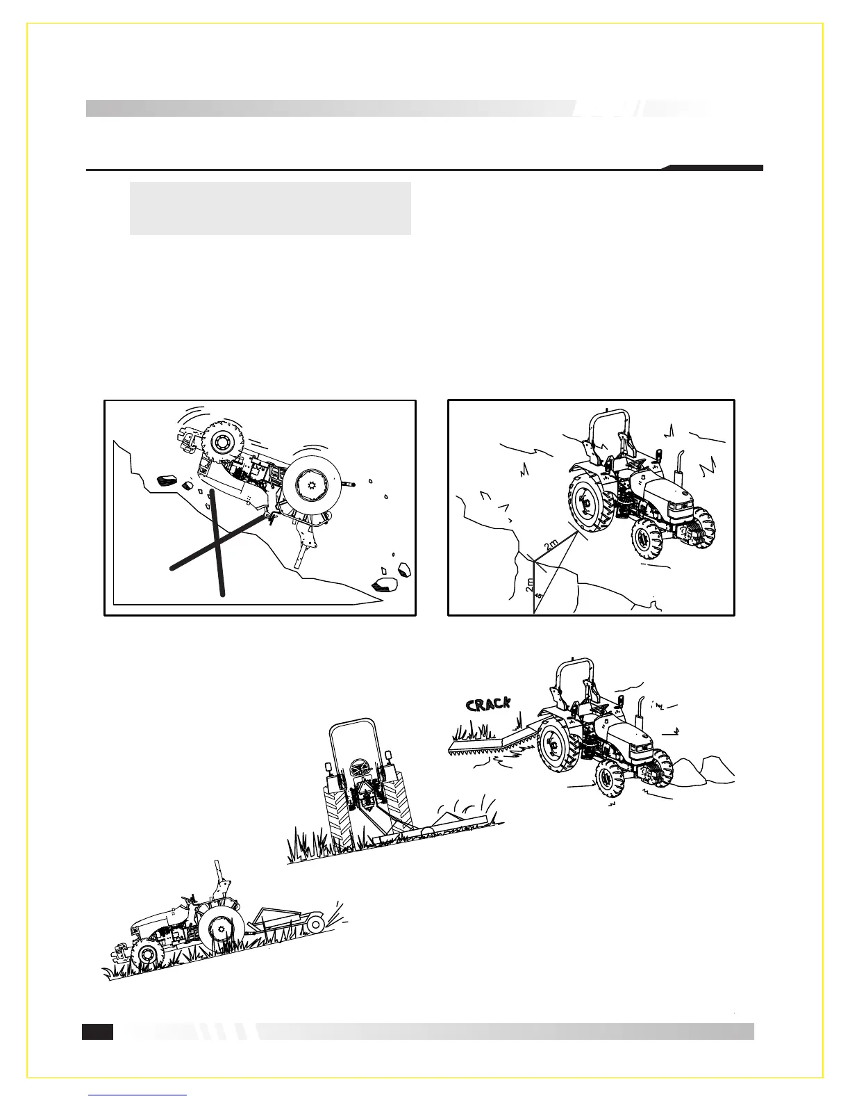 near ditches or banks, always keep your tractor