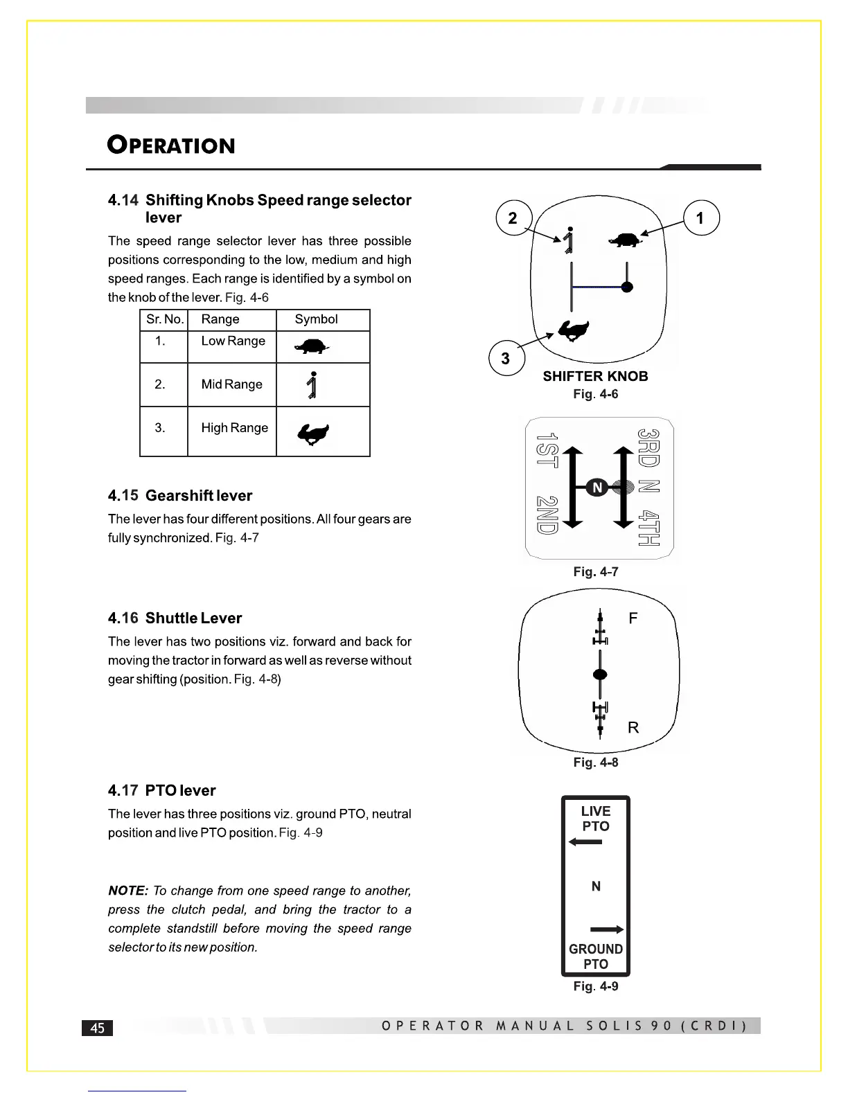 SOLIS 90 CRDI - Shifting Knobs Speed Range Selector Lever; Gearshift Lever; Shuttle Lever; PTO Lever