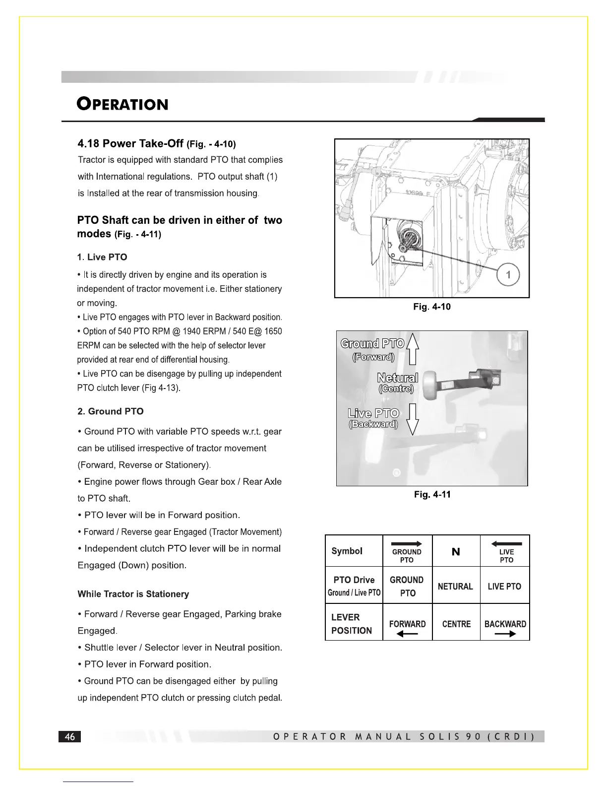 SOLIS 90 CRDI - Power Take-Off; Live PTO; Ground PTO; While Tractor Is Stationery