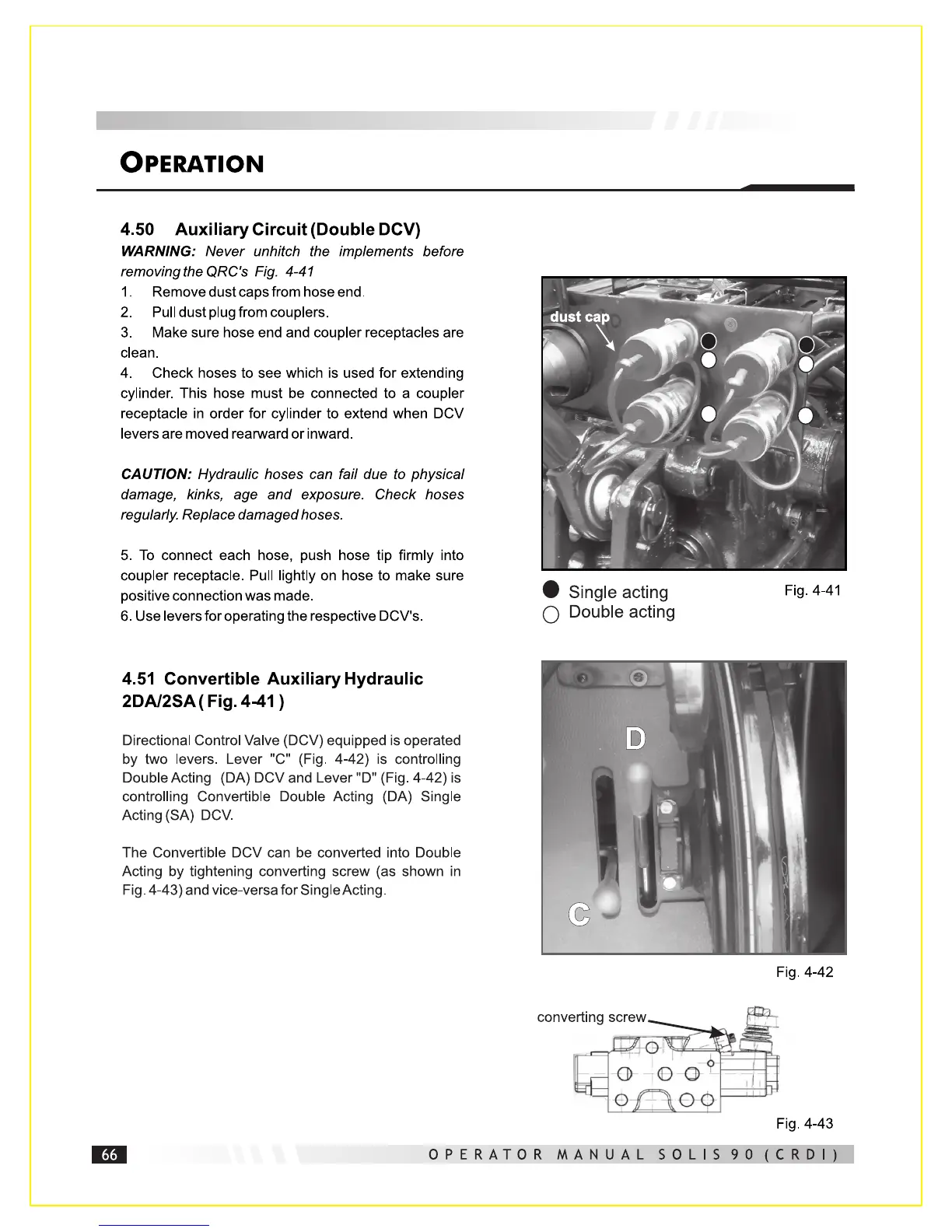 SOLIS 90 CRDI - Auxiliary Circuit (Double DCV); Convertible Auxiliary Hydraulic