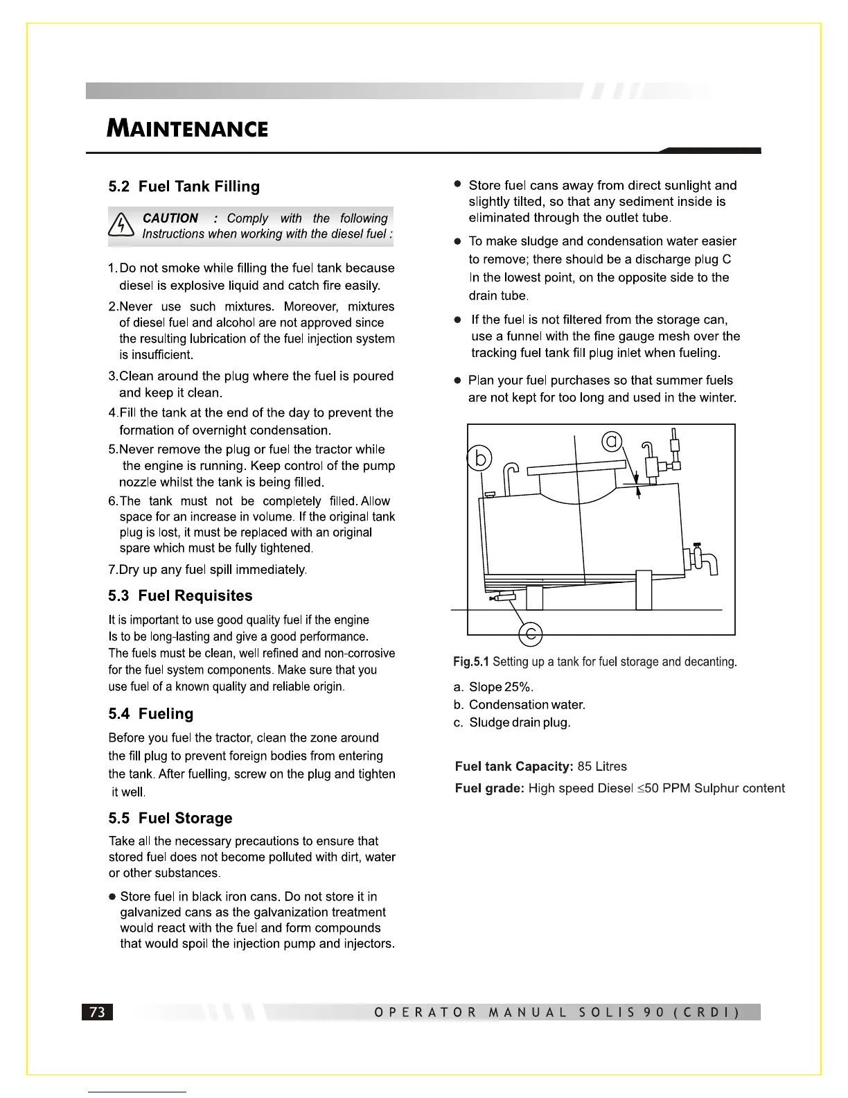 SOLIS 90 CRDI - Fuel Tank Filling; Fuel Requisites; Fuel Storage