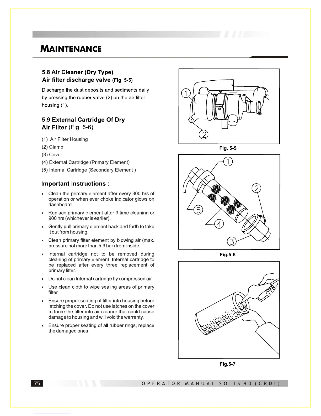 SOLIS 90 CRDI - Air Cleaner (Dry Type) Air Filter Discharge Valvfe; External Cartridge of Dry Air Filter