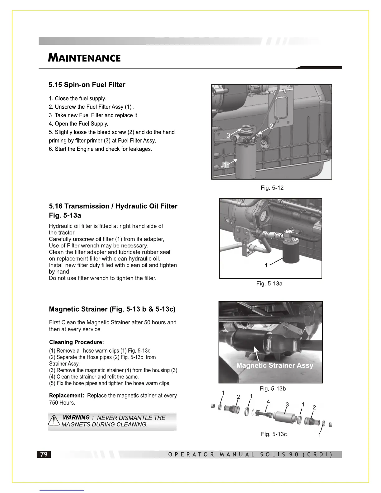 SOLIS 90 CRDI - Spin-On Fuel Filter; Transmission;Hydraulic Oil Filter; Magnetic Strainer
