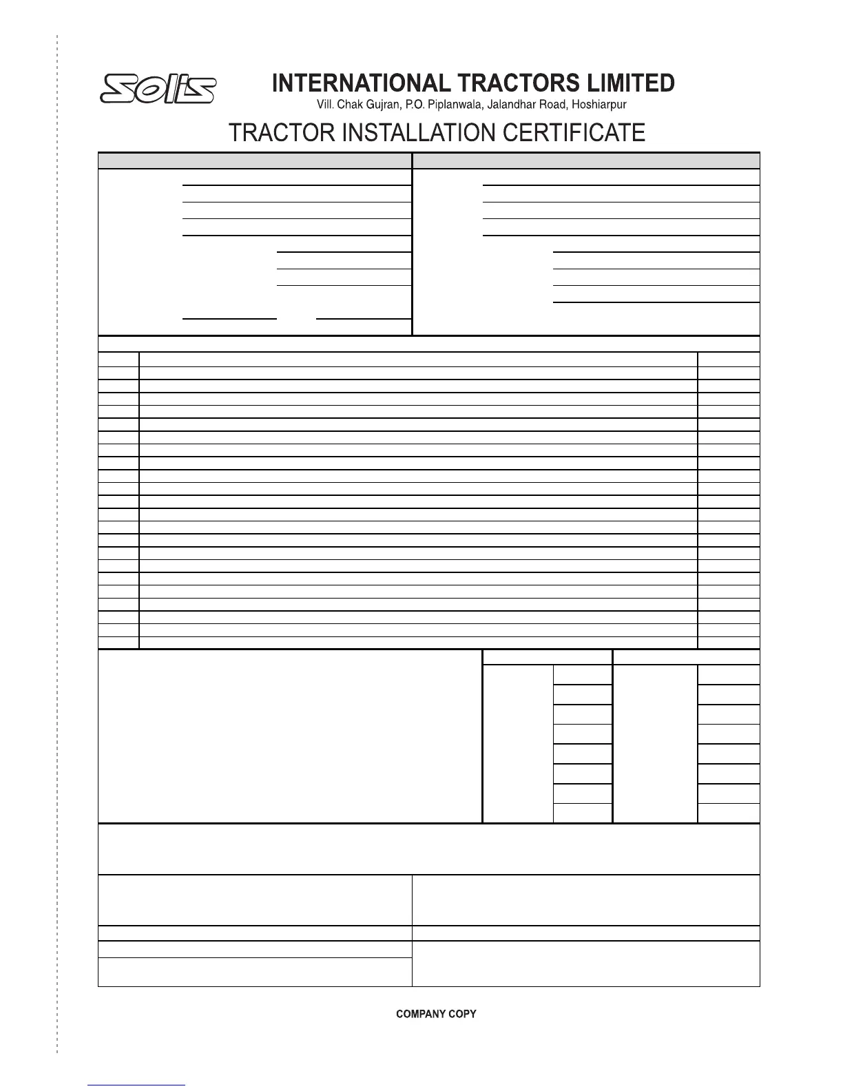 I hereby certify that I have understood all the instructions mentioned in this Certificate regarding Tractor maintenence and Proper use of all