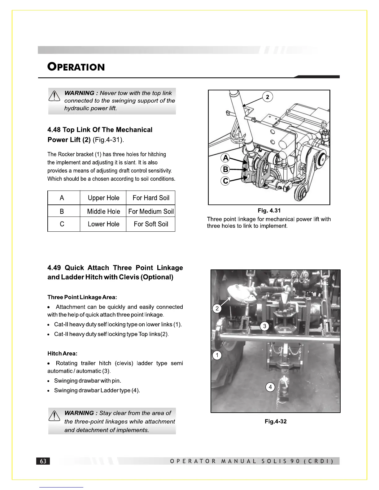 SOLIS 90 - Top Link of the Mechanical Power Lift; Quick Attach Three Point Linkage and Ladder Hitch with Clevis