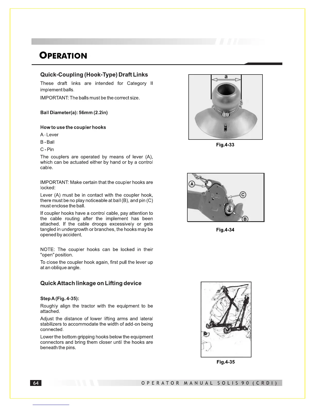 SOLIS 90 - Quick-Coupling (Hook-Type) Draft Links; Quick Attach Linkage on Lifting Device