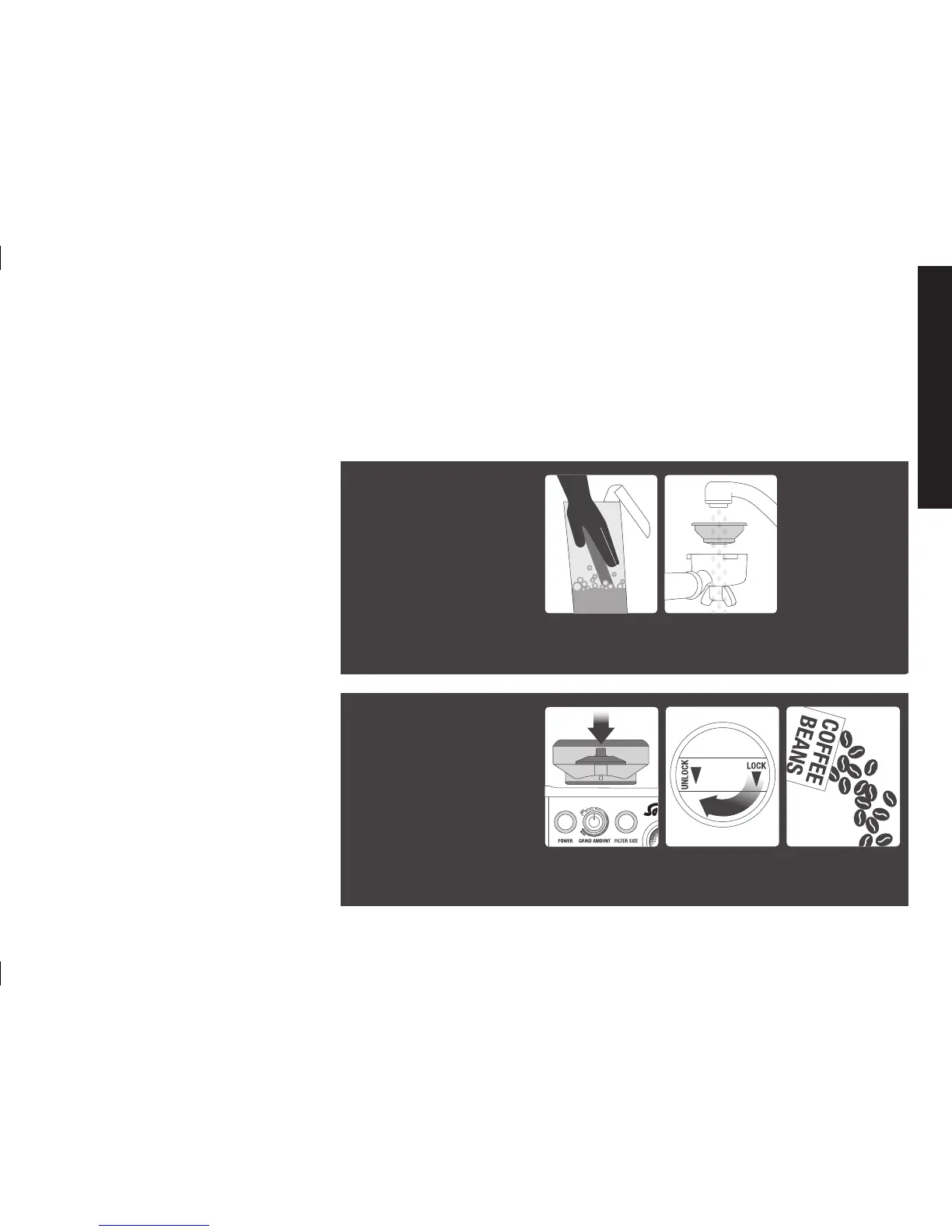Behälter verriegeln Bohnen einfüllen