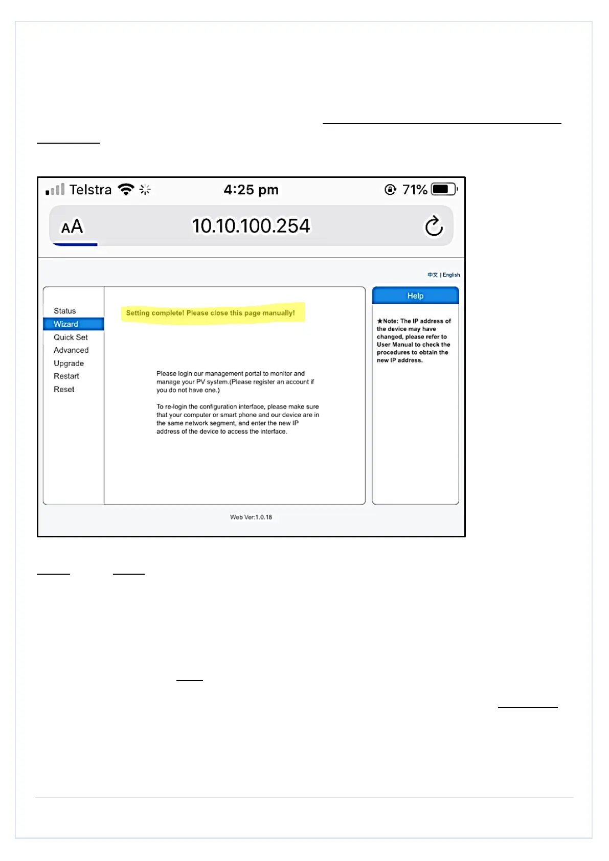 After 10-20 seconds, you should get a message: “Settings complete please close this page