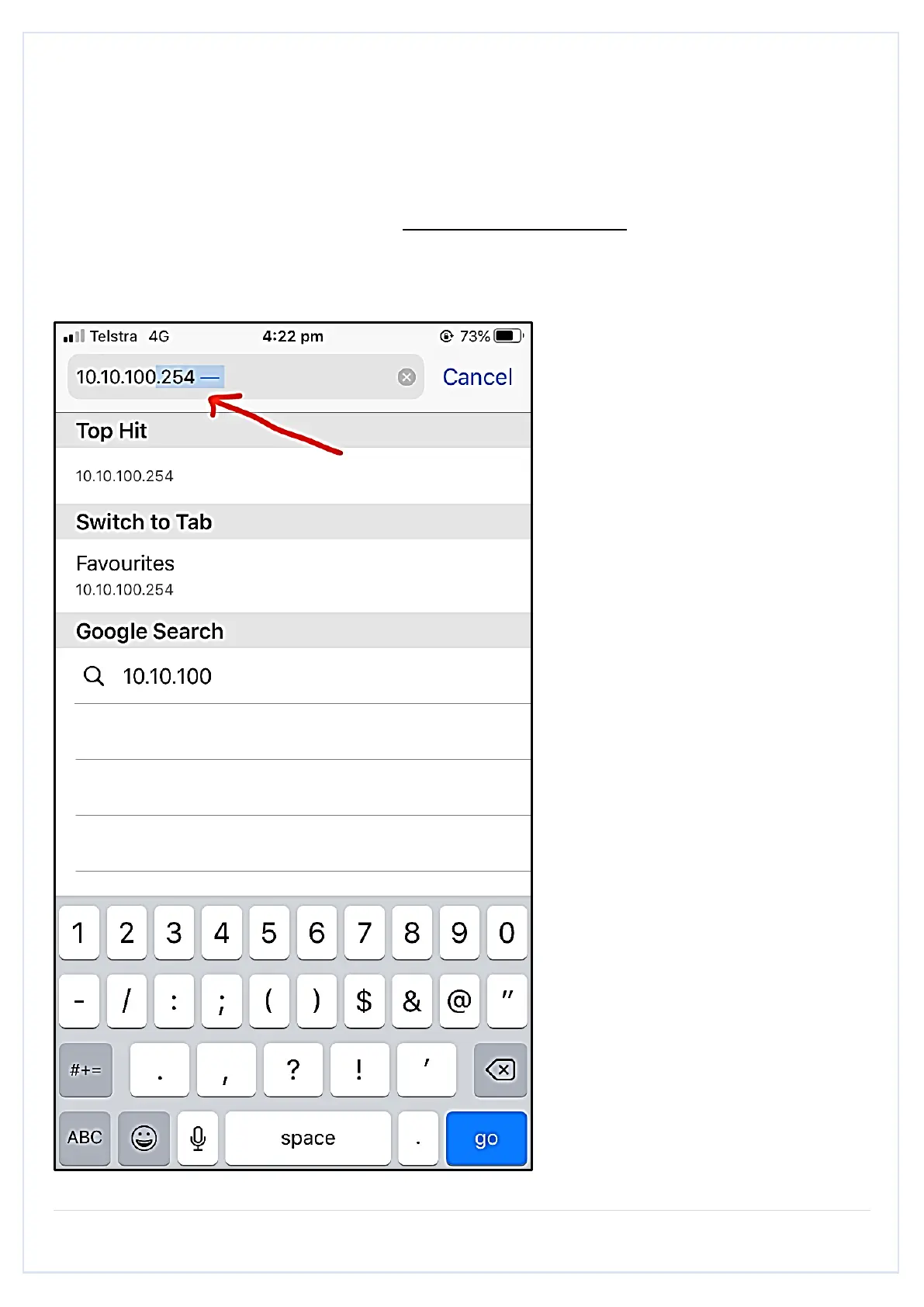 Open Safari/Chrome browser and type IP address 10.10.100.254
