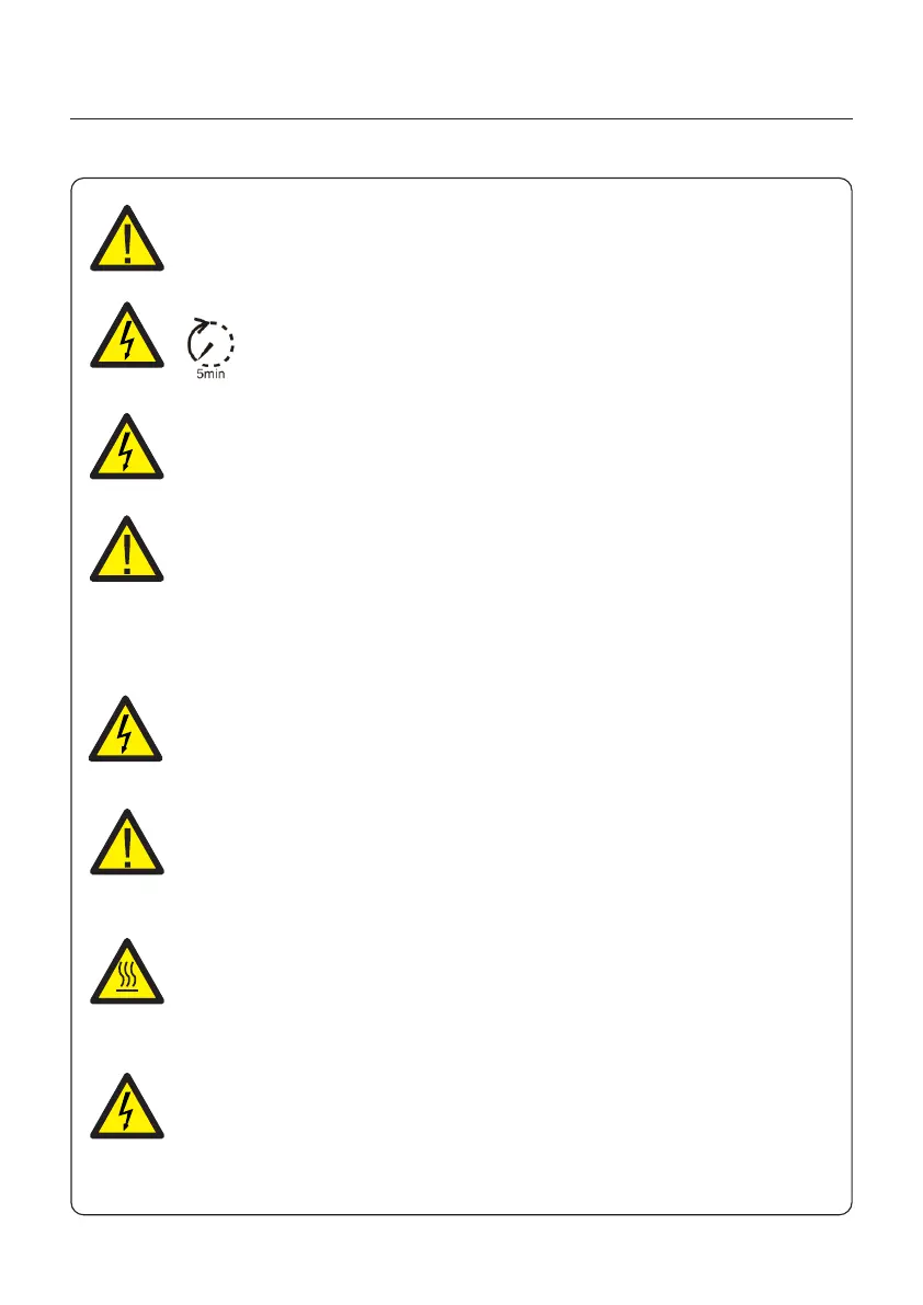 Do not touch any inner live parts until 5 minutes after disconnection from
