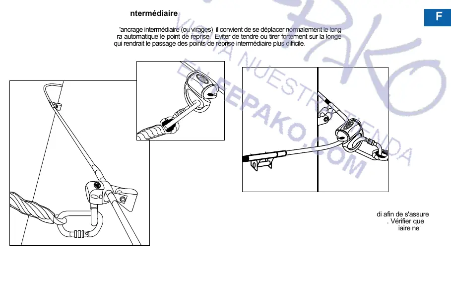 Pour un passage facile des points d'ancrage intermédiaire (ou virages) il convient de se déplacer normalement le long
