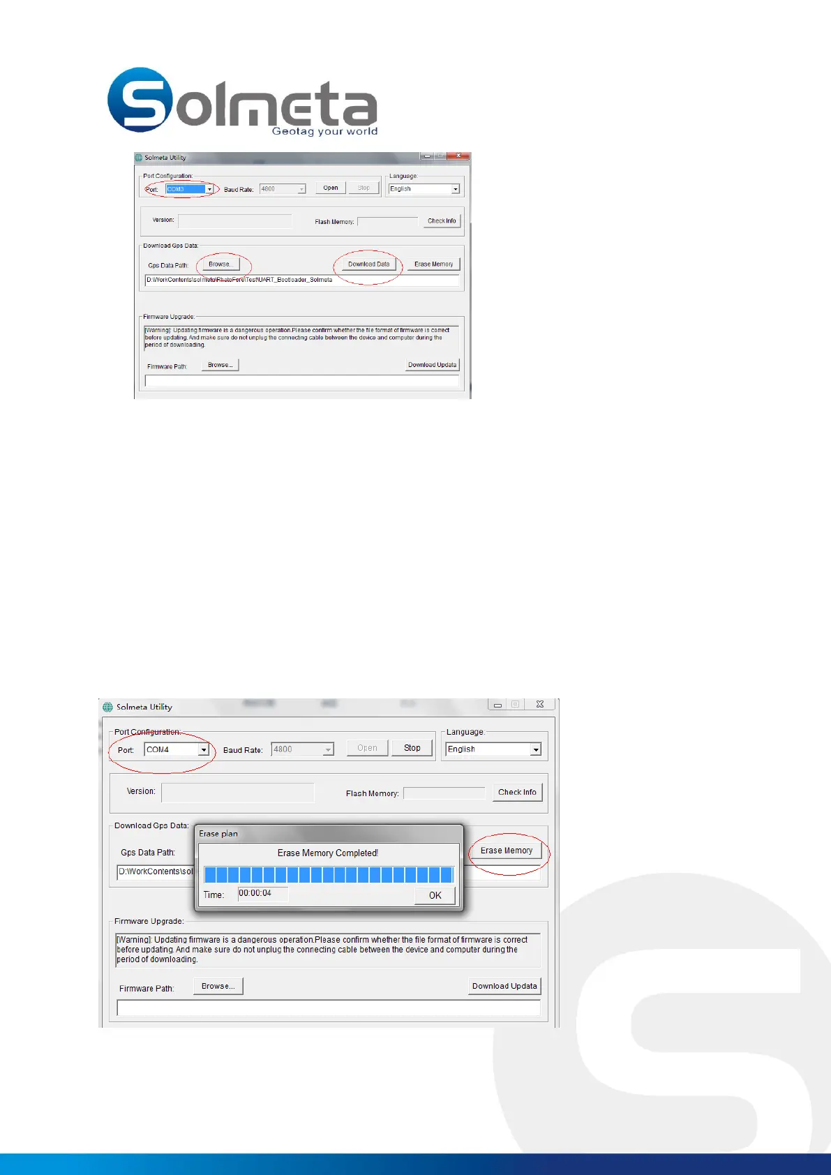 3. Execute the “SolmetaUtility.exe” and select the proper “COM port”.