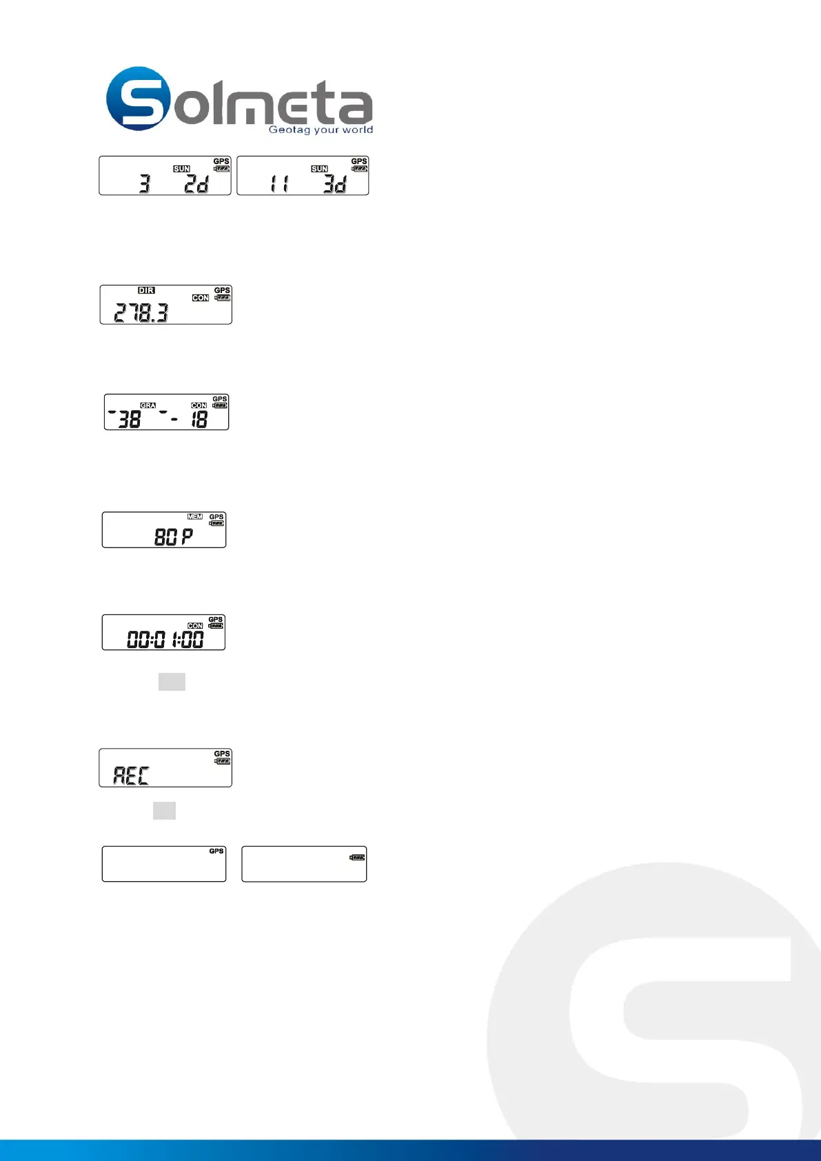 CON: The CON icon indicates the device continues to record the GPS data, the logging interval can be set