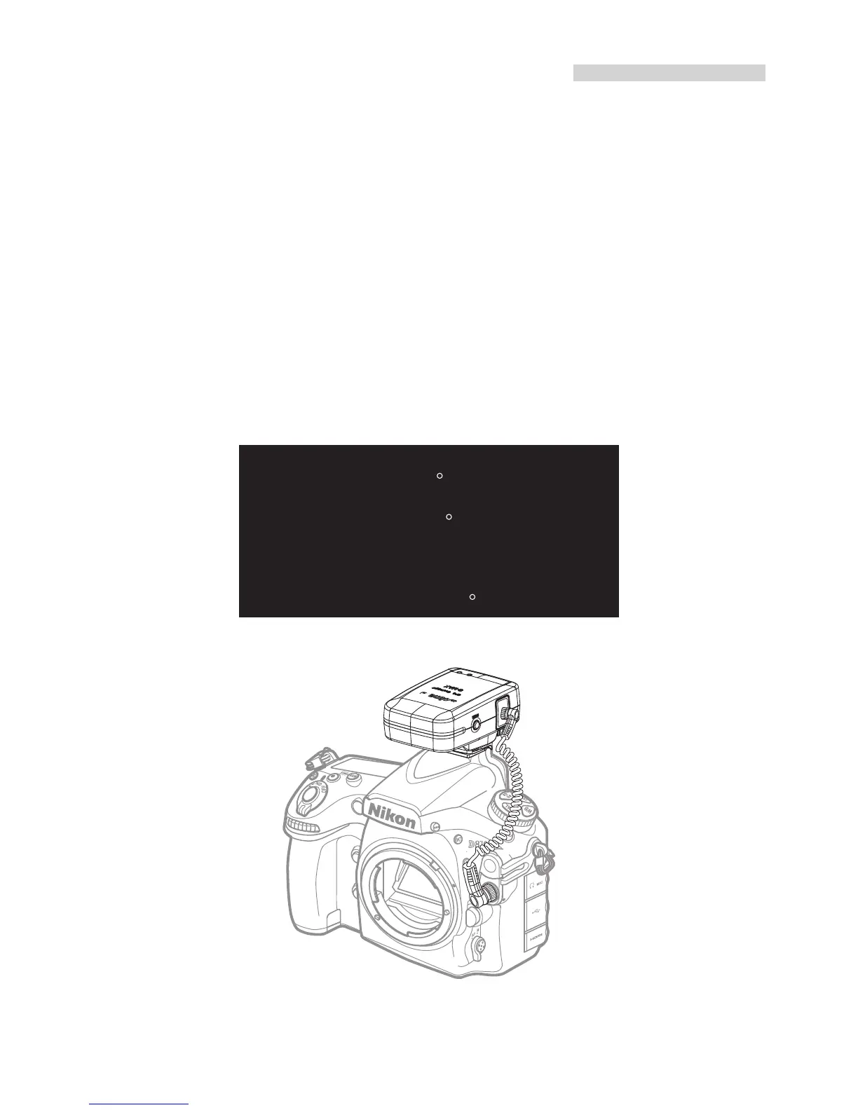 3.Connect the receiver to the camera via the data cable. Plug one end