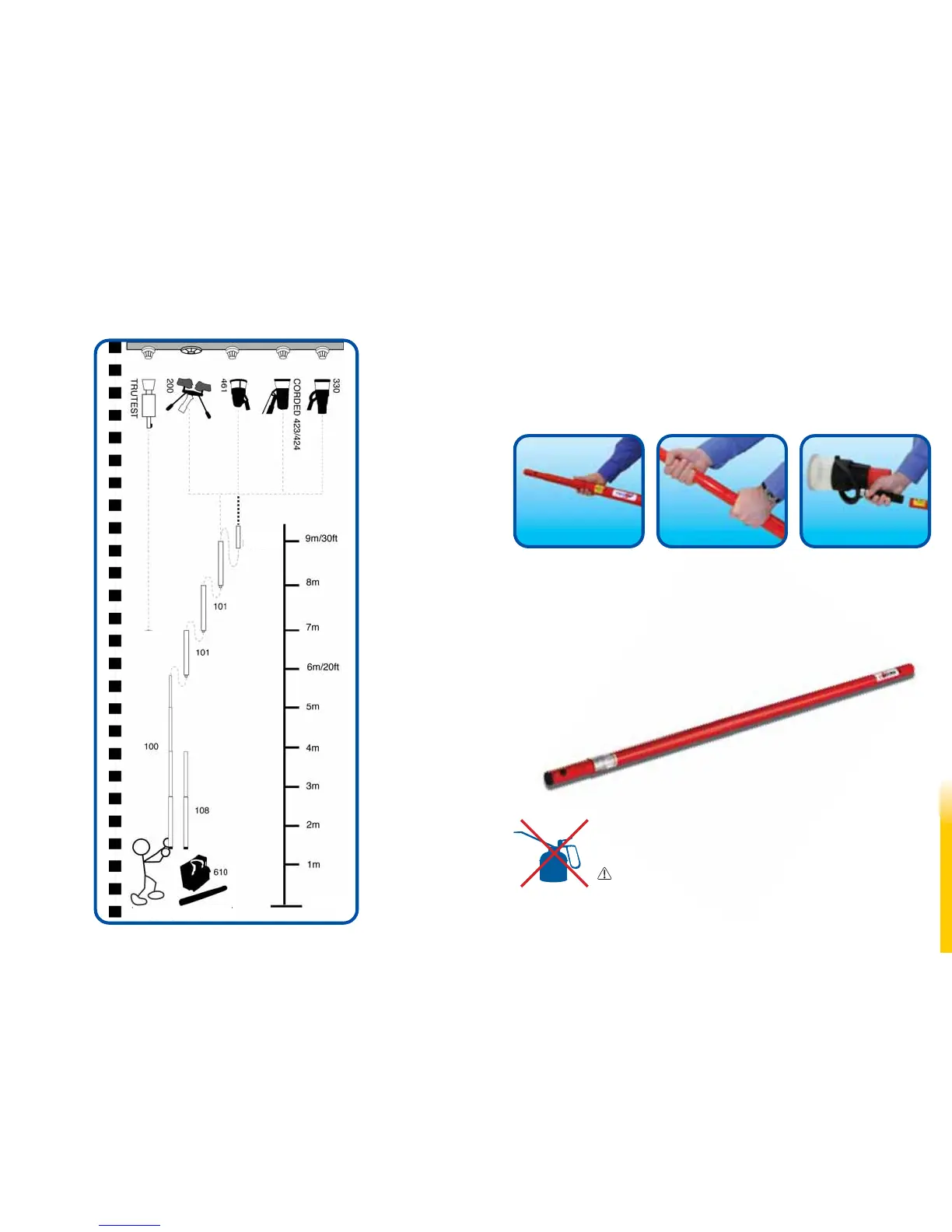 • Tubos extensibles de fibra de vidrio no conductores