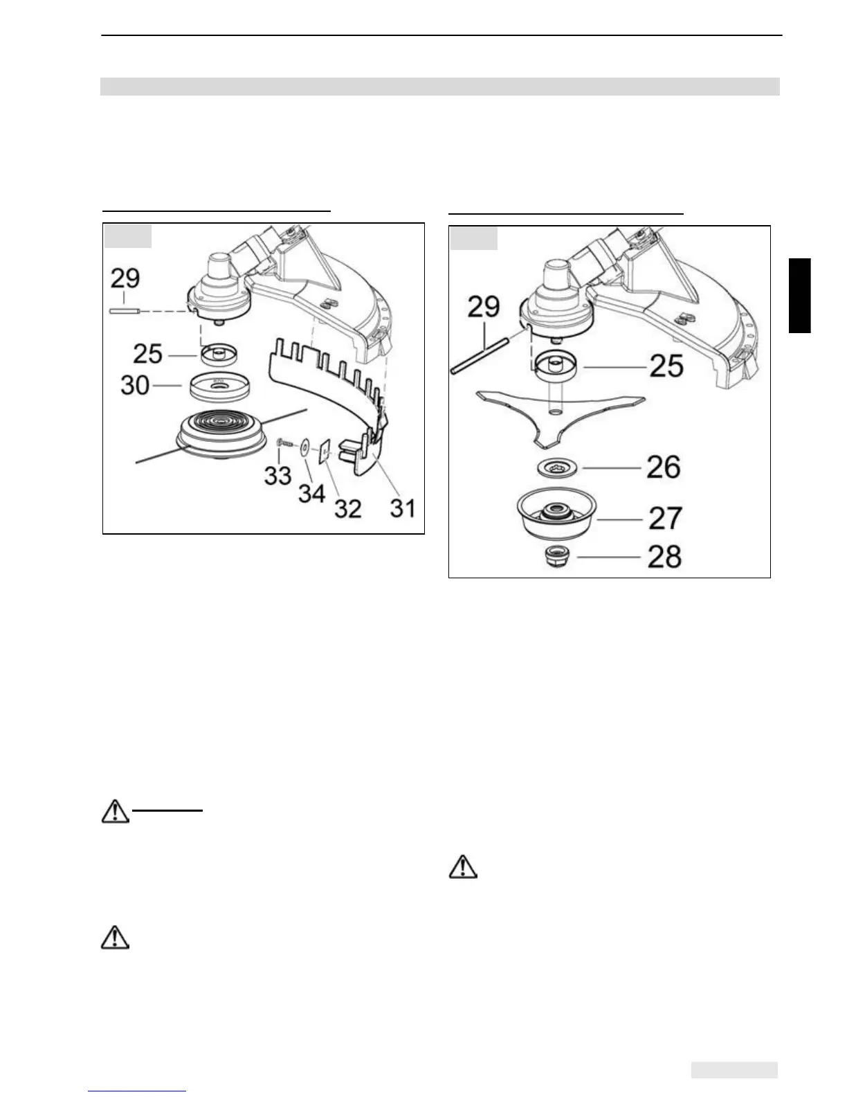 Subject to model version, a line head or metal cutting blade (4-tooth grass cutting blade / 3-tooth brush