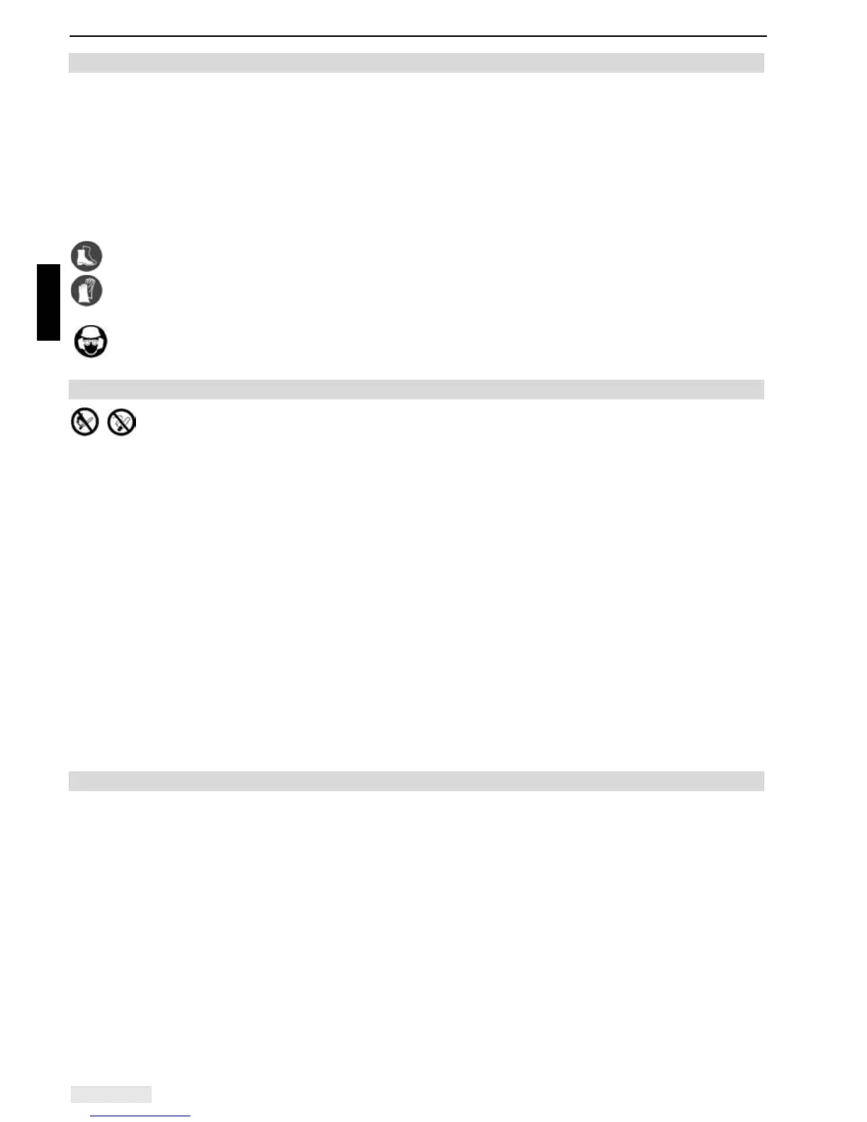 Never wear scarves, ties, jewellery or other items of clothing, which might get caught in the equipment, in