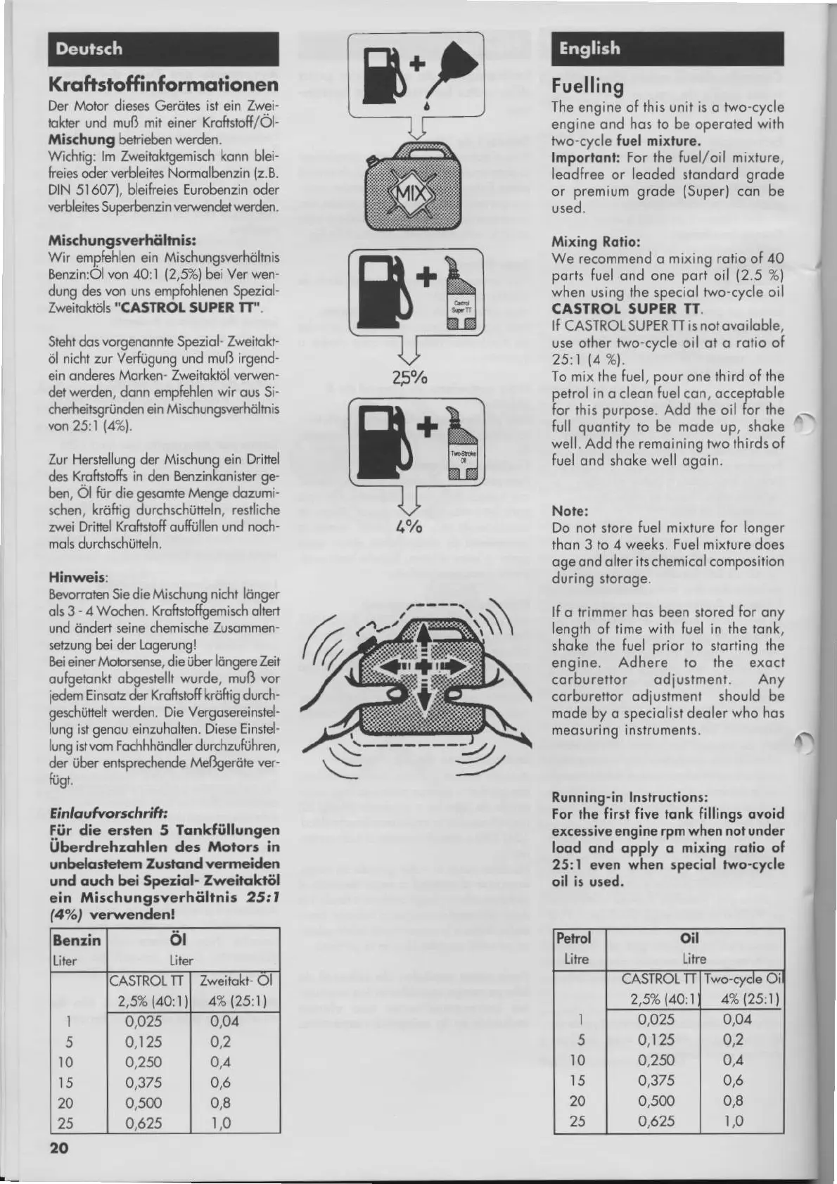 lmporlontr tor the fuel/oil mixture,