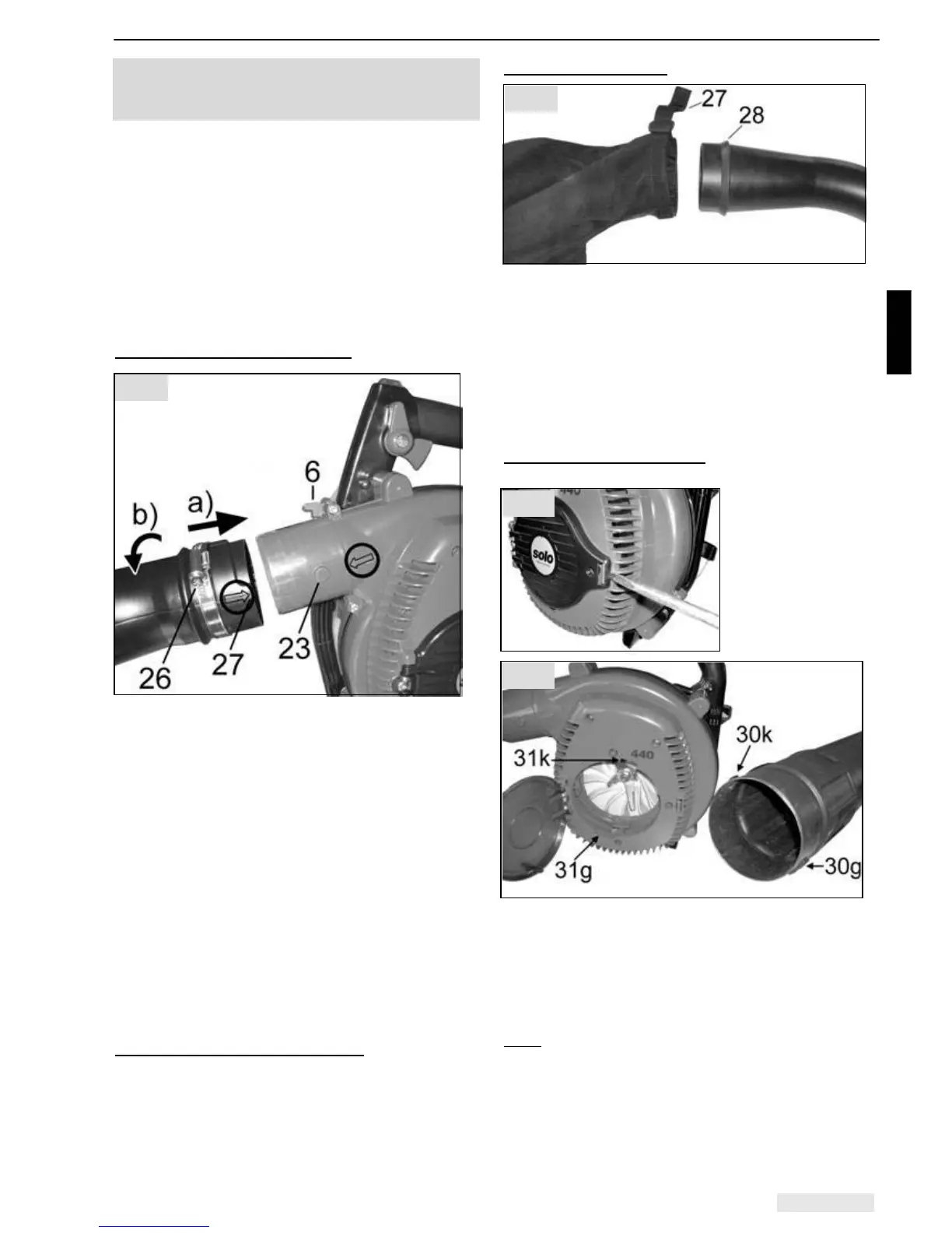 a) Push exhaust air elbow (20) with groove (27) over