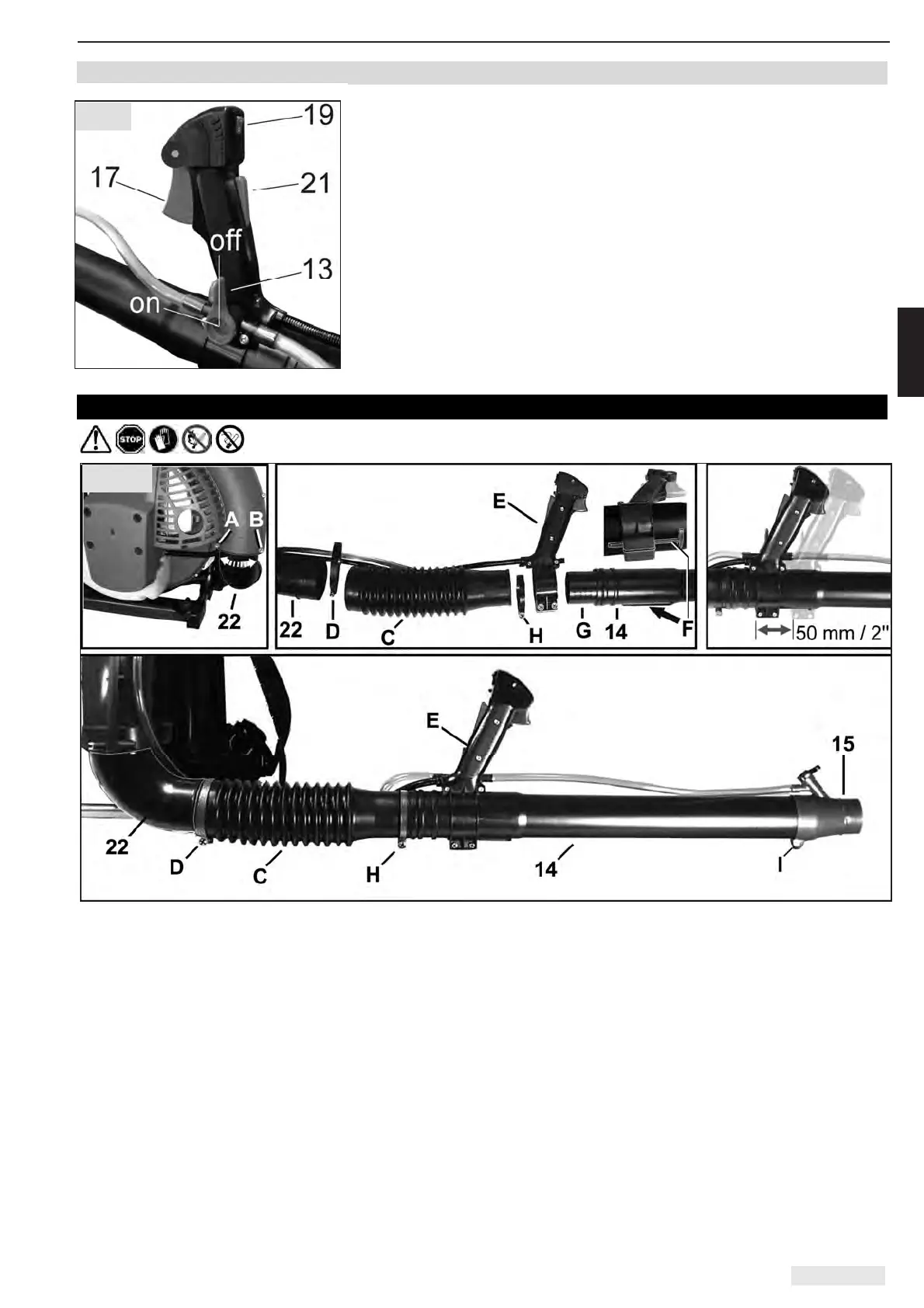 can swivel easily. Push pleated hose (C) onto blower elbow (22) and secure with clamp (D).