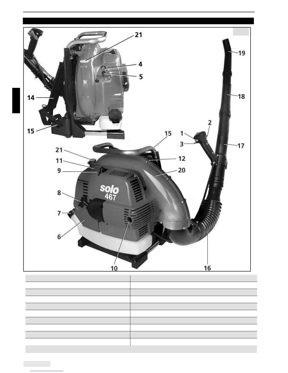 21. Plug ( Note: This is where, when converting the equipment into a sprayer, the liquid container is connected )