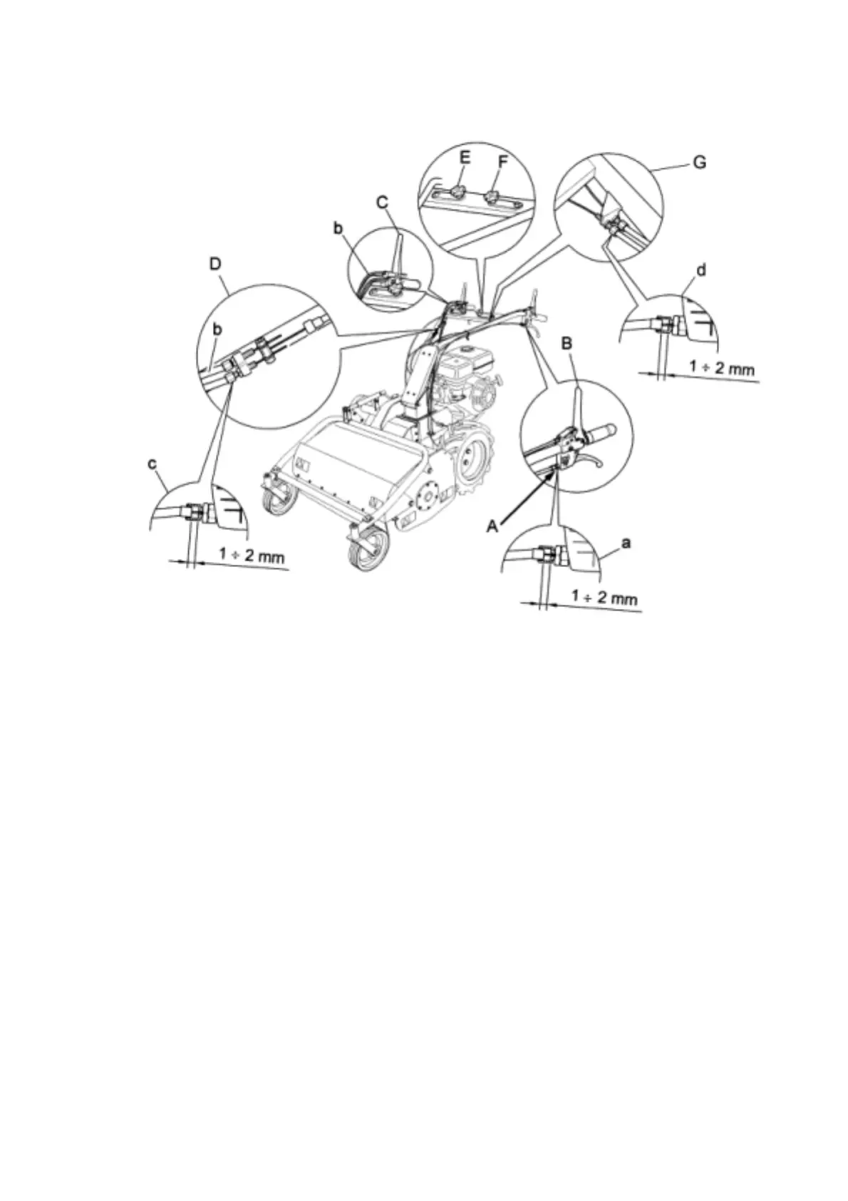 upper part of the cable and the adjustment screw (Fig. 5,. ref. A, point a). If there