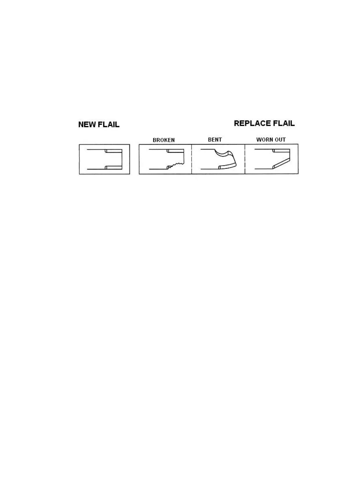 5. Check that the flails are not cracked, bent, excessively worn or broken. If