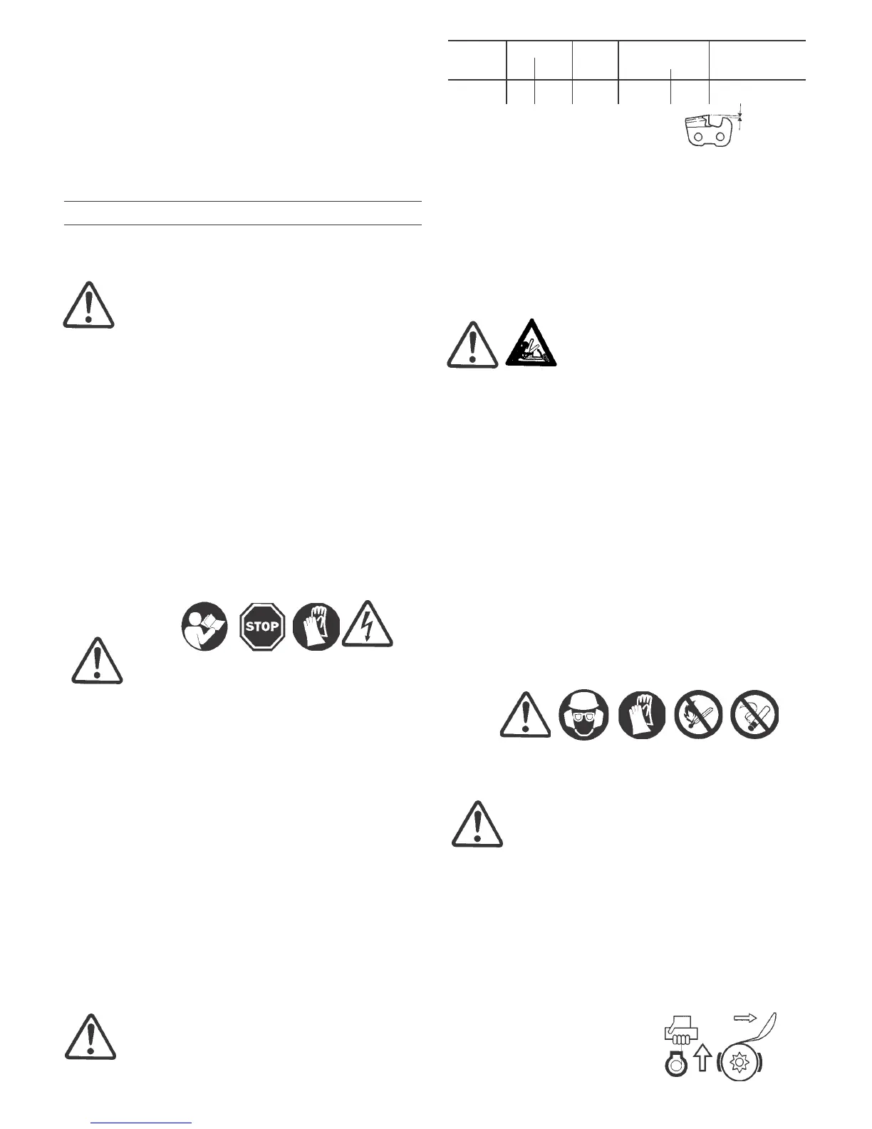 Caution! Prior to any maintenance on the saw chain,