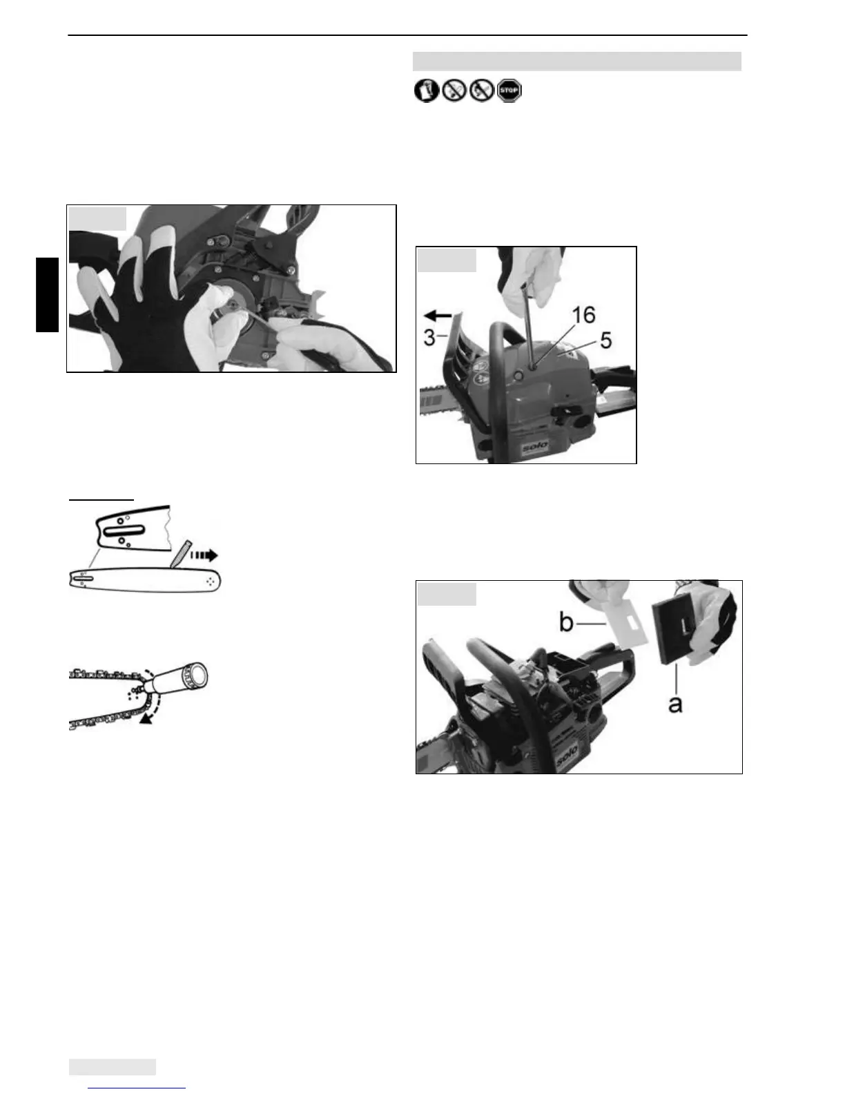 bar cover and the guide bar with chain), push the chain