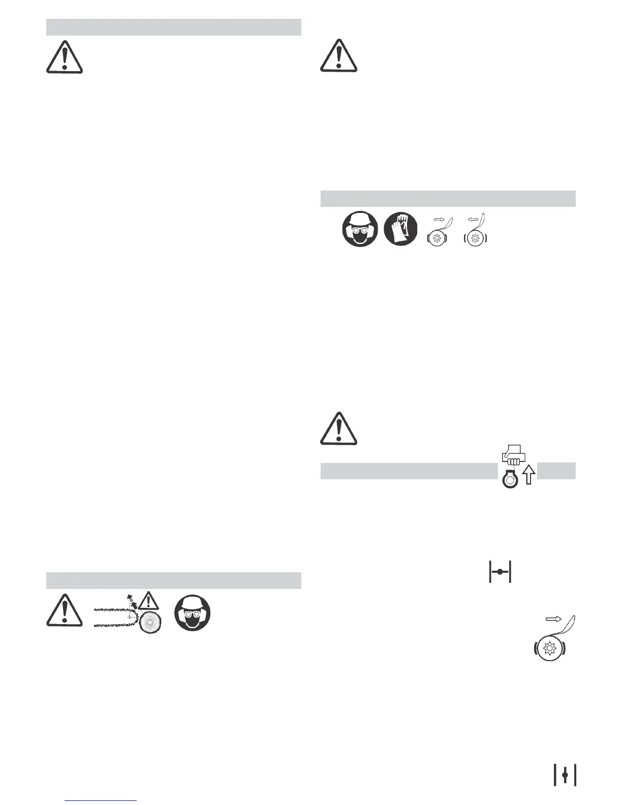 - Vérifiez le bon engagement du guide chaîne avant de démarrer.