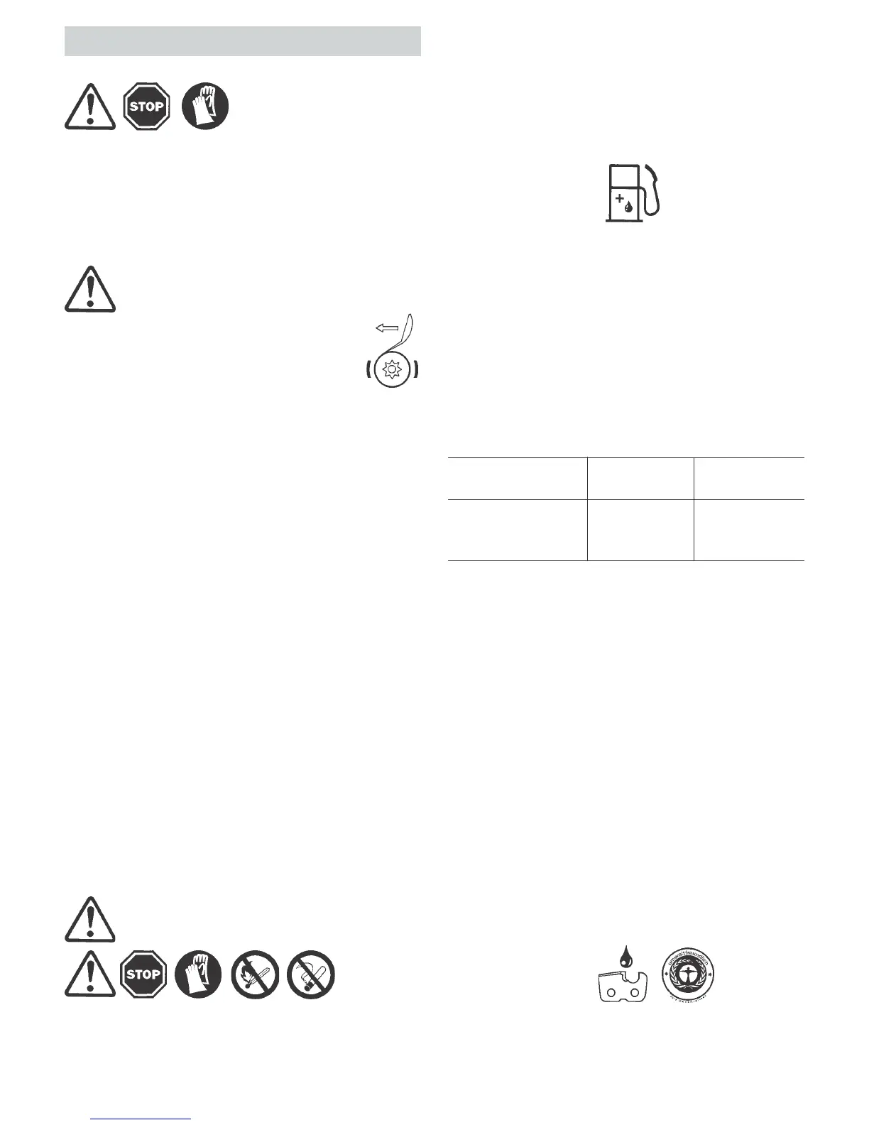 - Brandstof en kettingolie alleen in goedgekeurde en