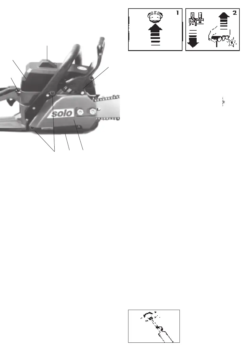 Unterseite der Motorsäge um ca. 3/4 Um-