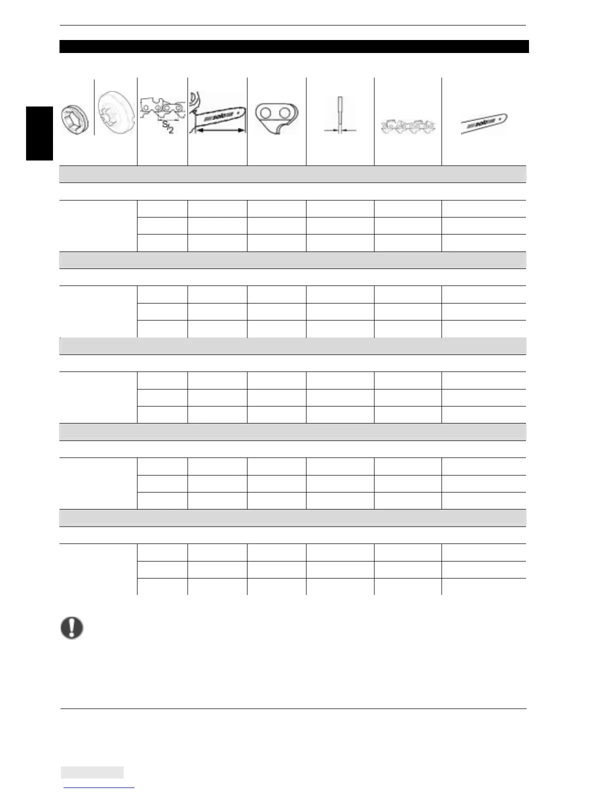 Important: Only use the specified combination of sprocket, saw chain and guide rail. Never