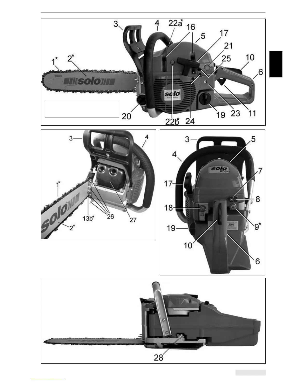 Your SOLO chainsaw - Designation of important controls and functional parts