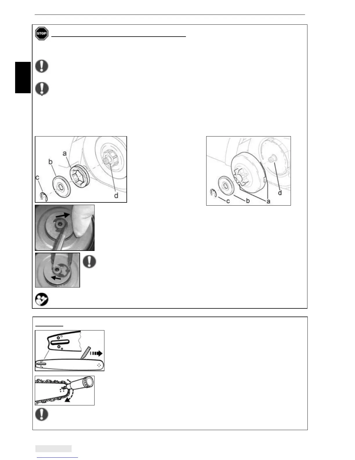 Important: The guide bars are only designed to guide the saw chain and must not be used as a
